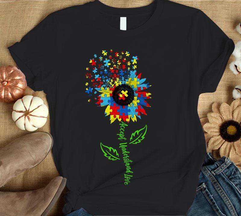 Autism Acceptance Shirt, Accept Understand Love, Puzzle Piece Sunflower