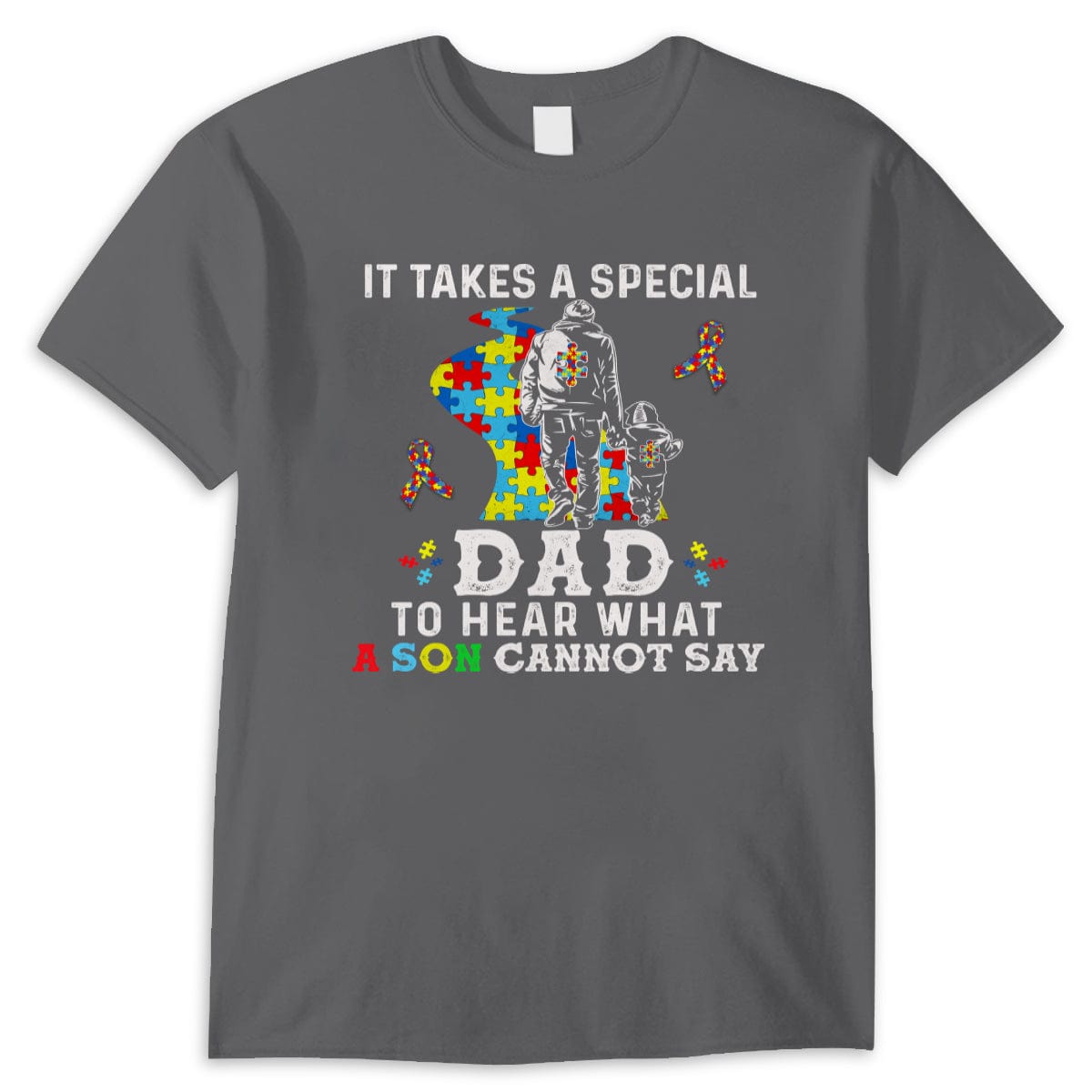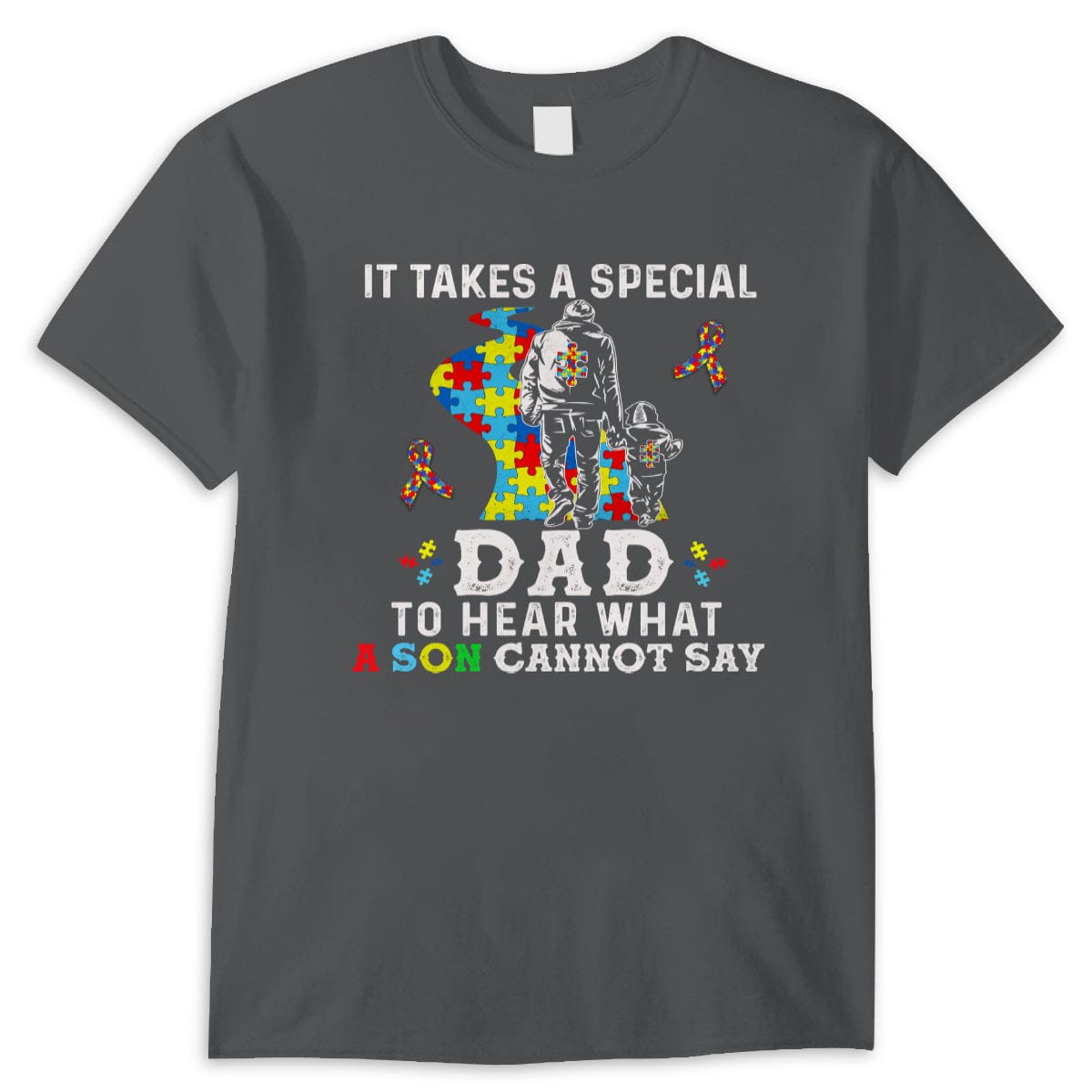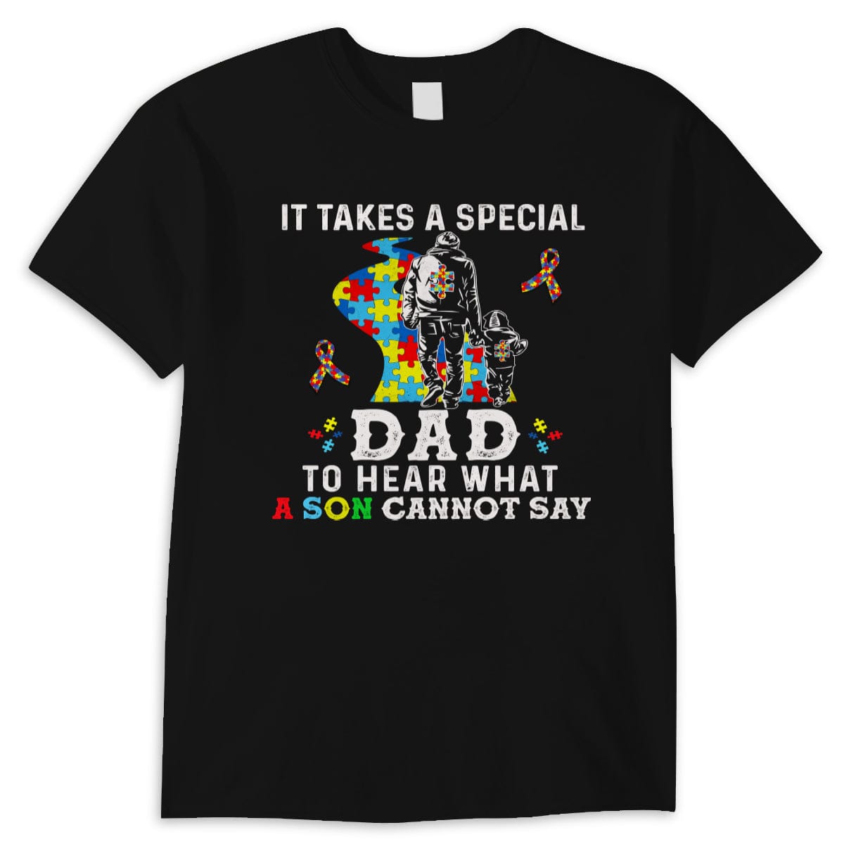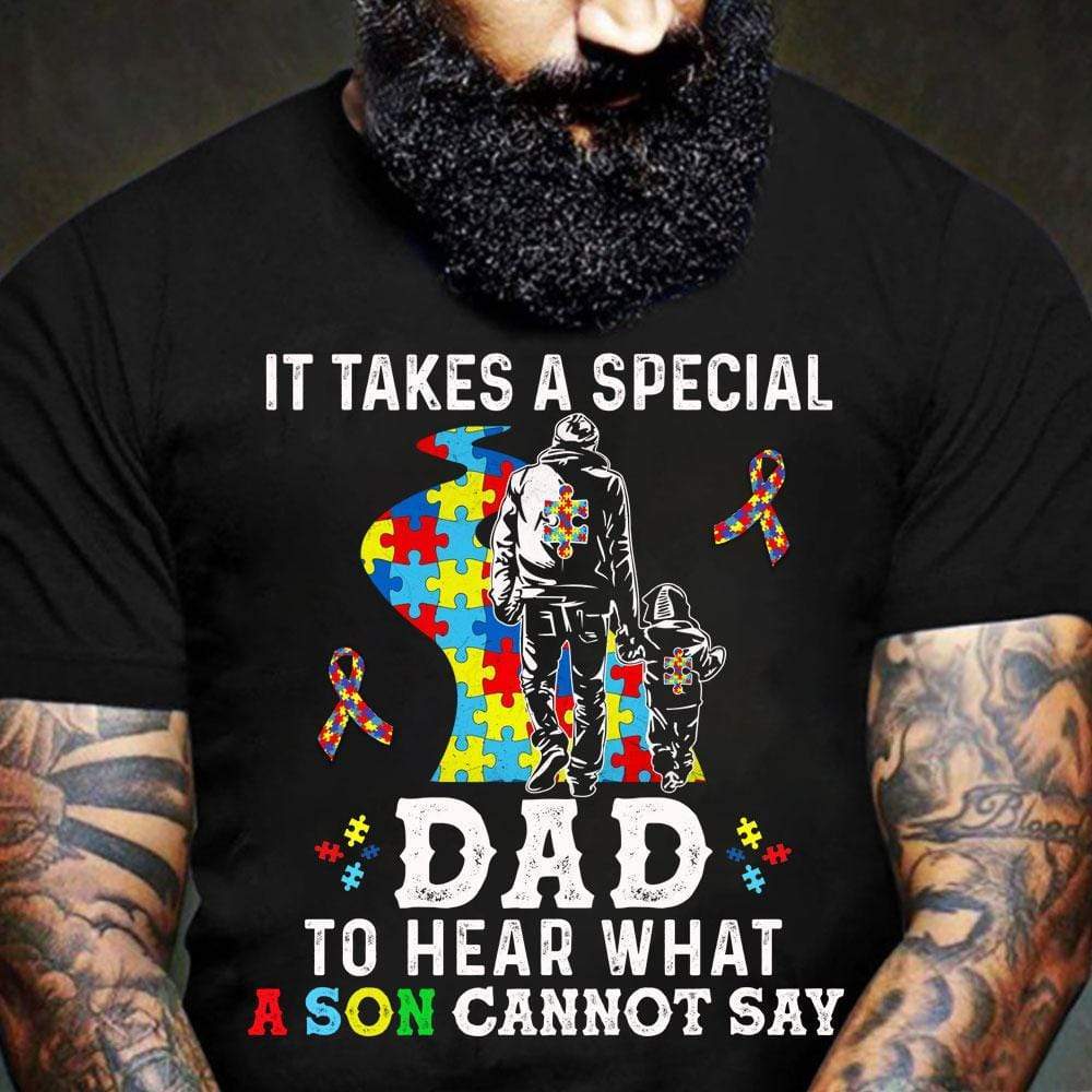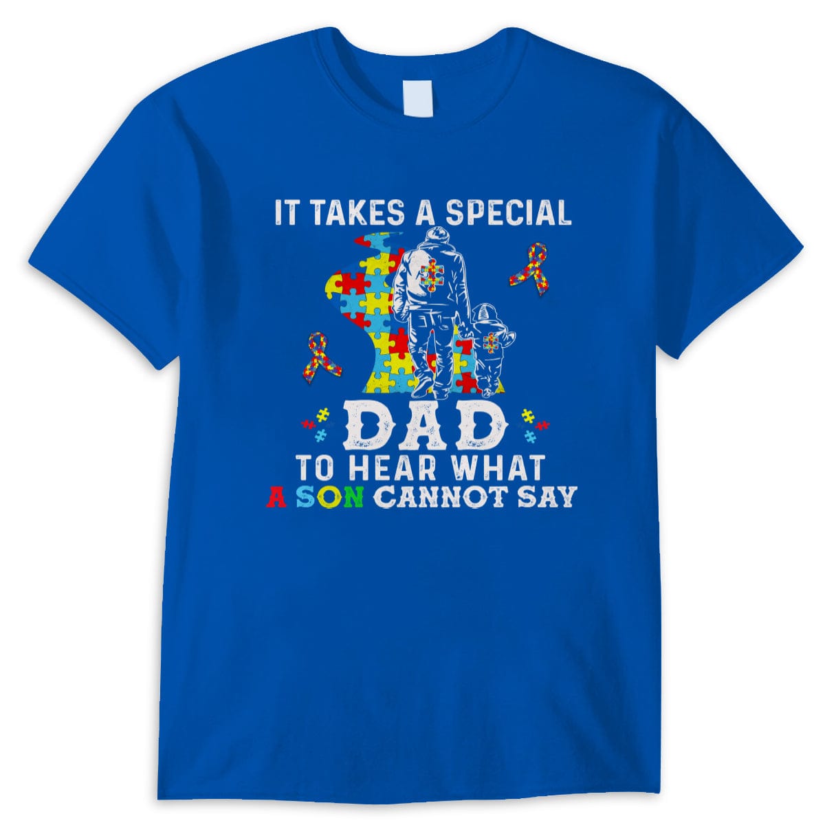 Autism Dad Shirt, It Takes Special Dad To Hear What Son Cannot Say, Puzzle Piece Road Ribbon