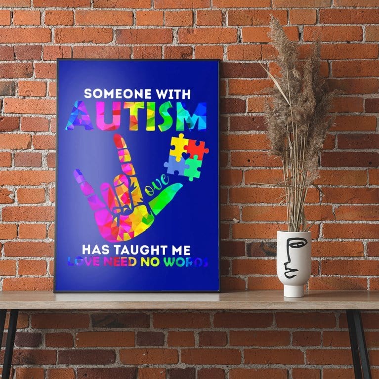 Someone With Autism Has Taught Me Love Needs No Words Autism Awareness Poster, Canvas