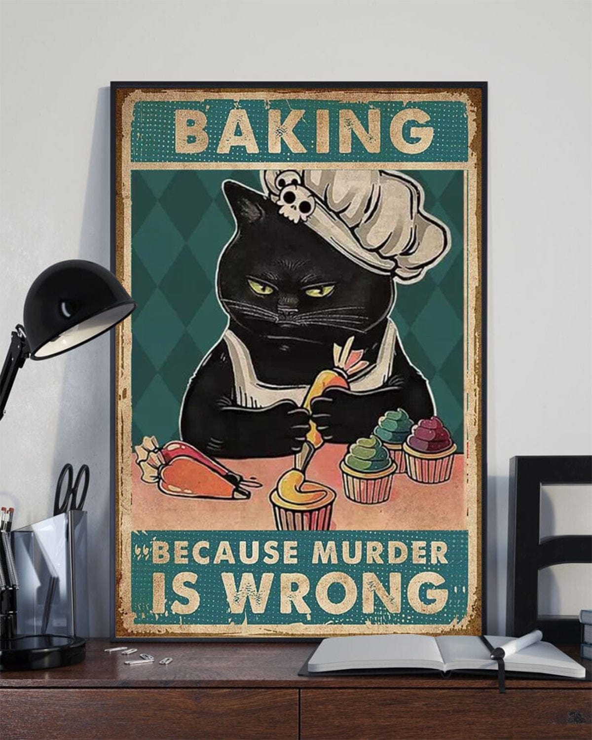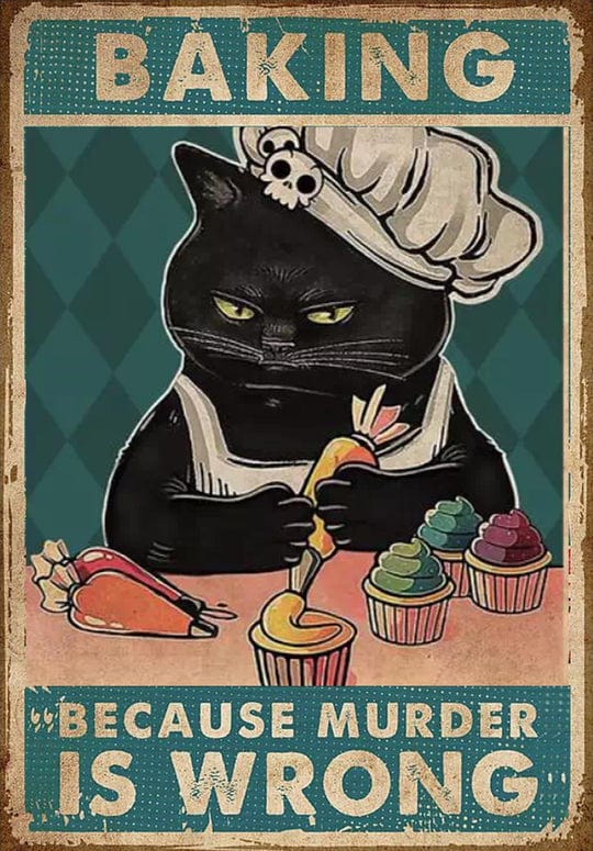 Funny Black Cat Baking Because Murder Is Wrong Poster, Canvas
