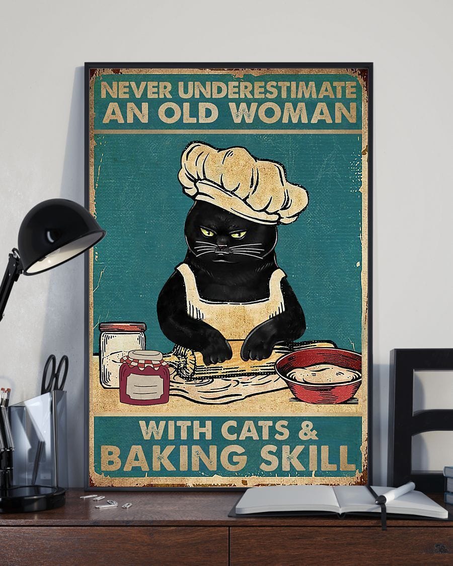 Never Underestimate An Old Woman With Cats And Baking Skill Funny Black Cat Poster, Canvas