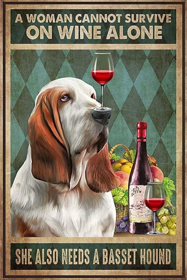 A Woman Cannot Survive On Wine Alone She Also Needs A Basset Hound Poster, Canvas