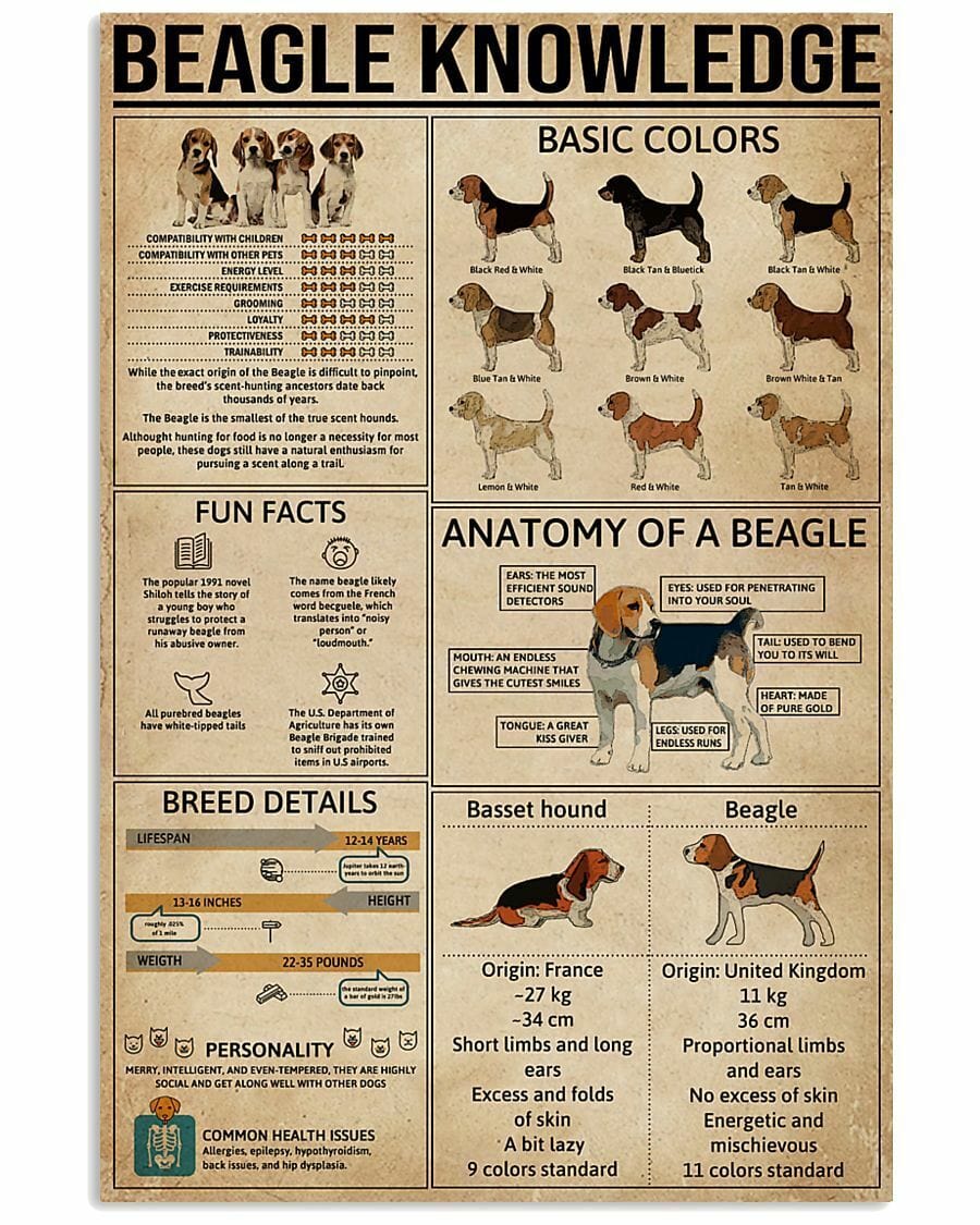 Beagle Knowledge Dog Poster, Canvas