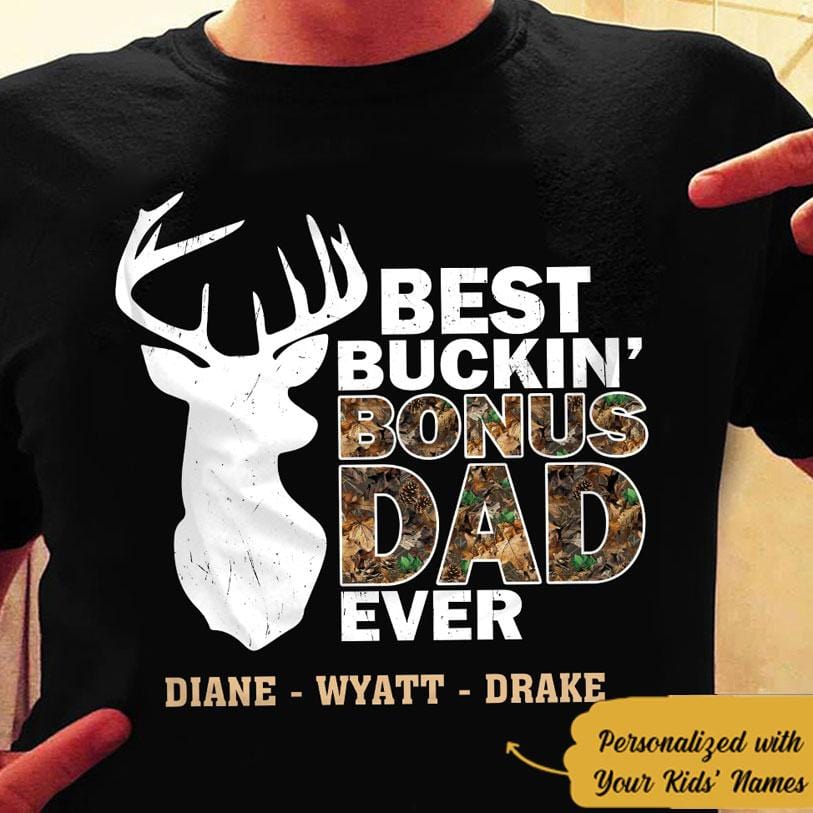 Best Buckin' Bonus Dad Ever, Personalized Deer Hunting Shirts