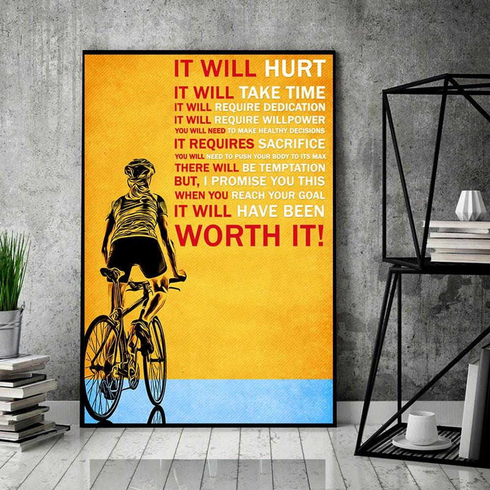 Biking Poster, It Will Hurt It Wil Take Time, Gift For Biker, Canvas Wall Print Art