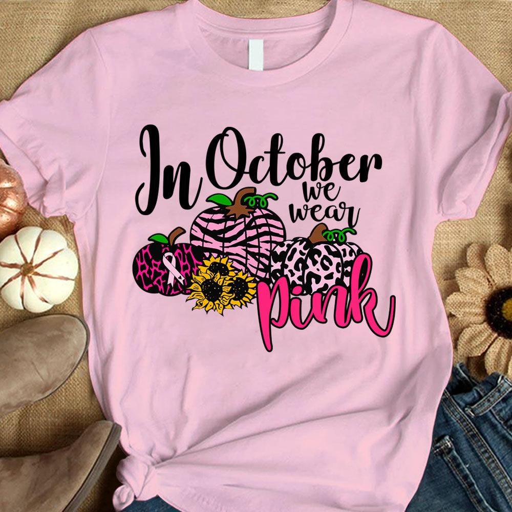 Breast Cancer Shirts, In October We Wear Pink Pumpkin
