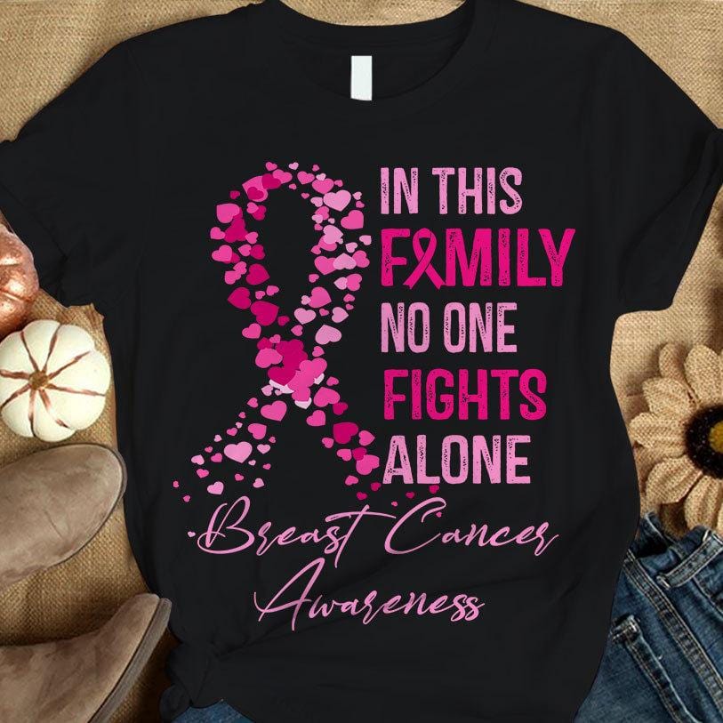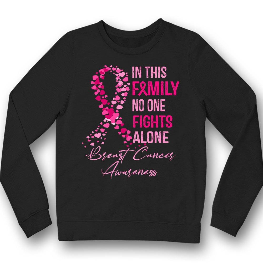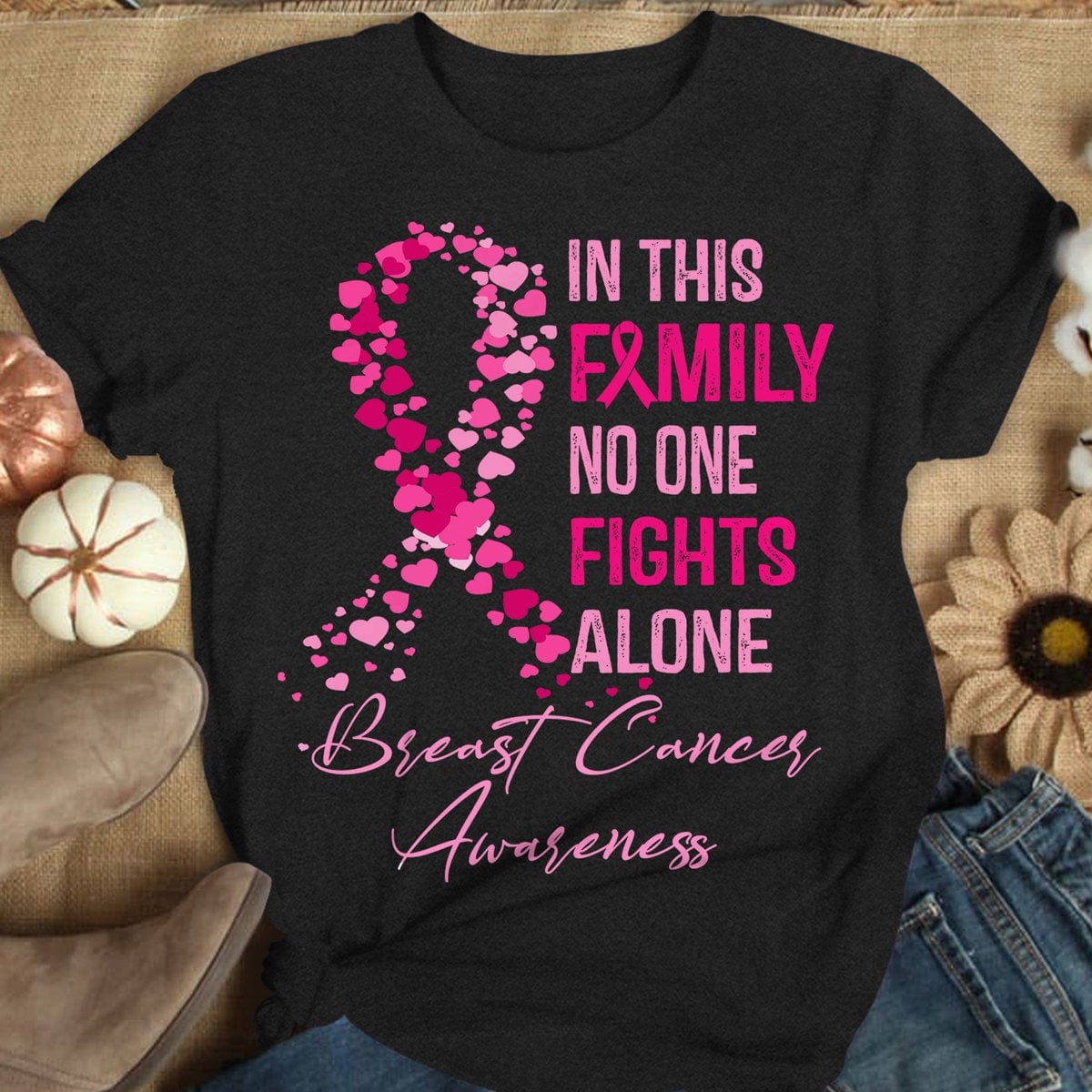 In This Family No One Fights Alone, Breast Cancer Shirts For Family Ribbon