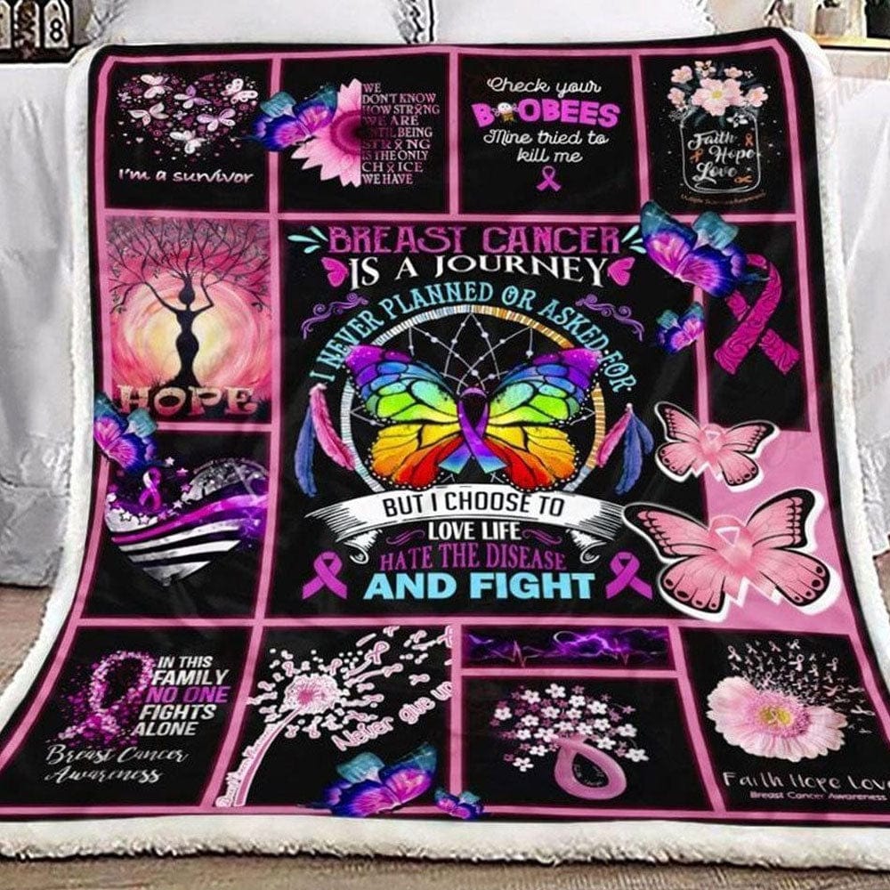 Breast Cancer Blanket, Breast Cancer Is A Journey I Never Planned Or Asked I Choose To Love Life And Fight, Fleece & Sherpa