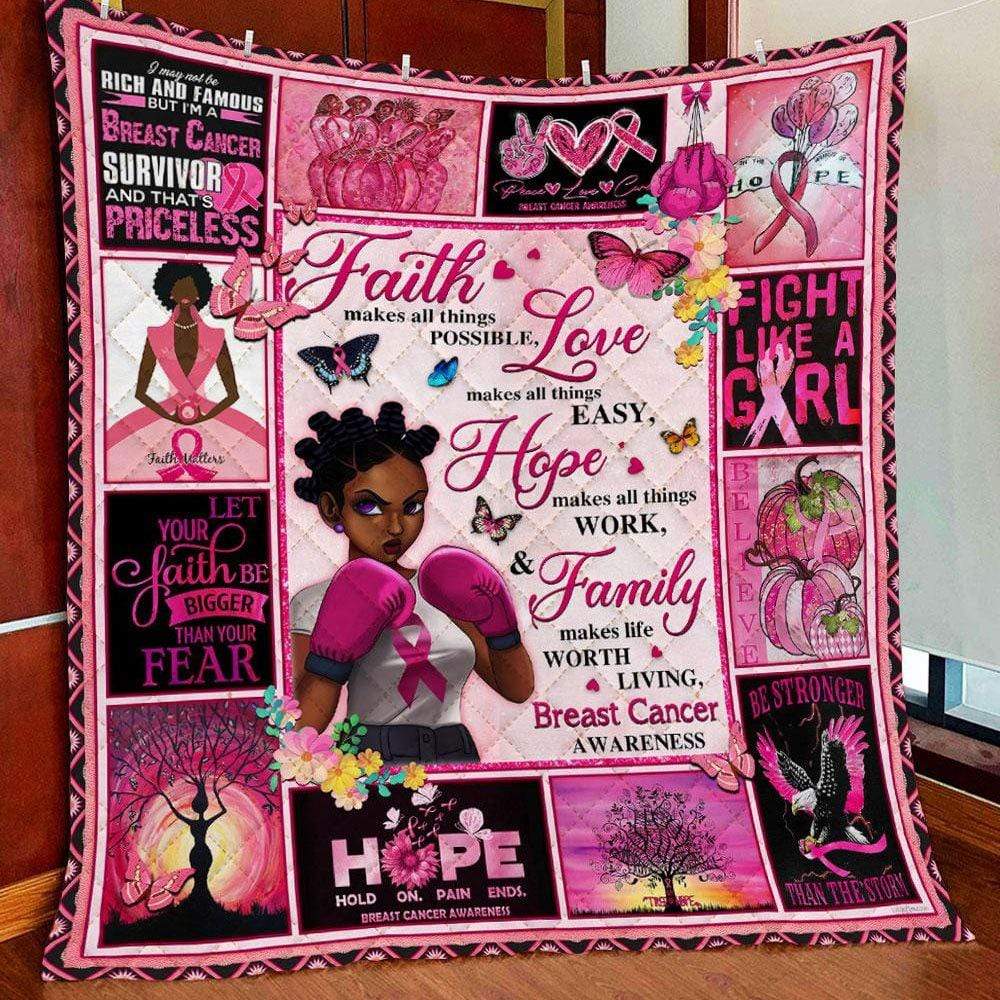 Fight Faith Hope Love, Breast Cancer Fleece & Sherpa Blanket