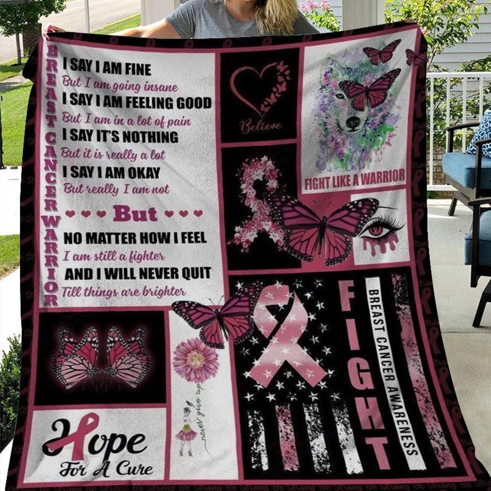 Fight Like A Warrior Pink Ribbon Butterfly, Breast Cancer Fleece & Sherpa Blanket