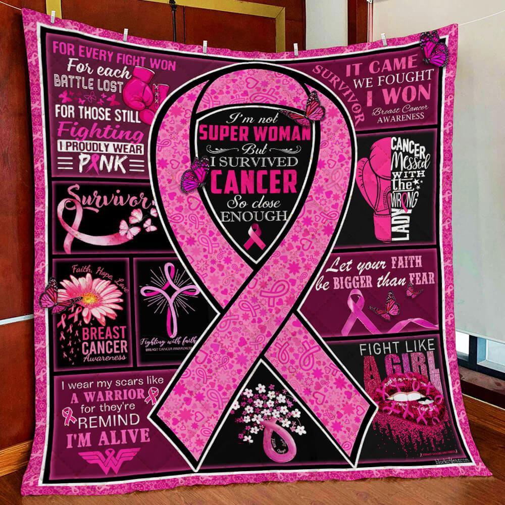 I'm Not Super Woman I Survived Cancer, Breast Cancer Fleece & Sherpa Blanket