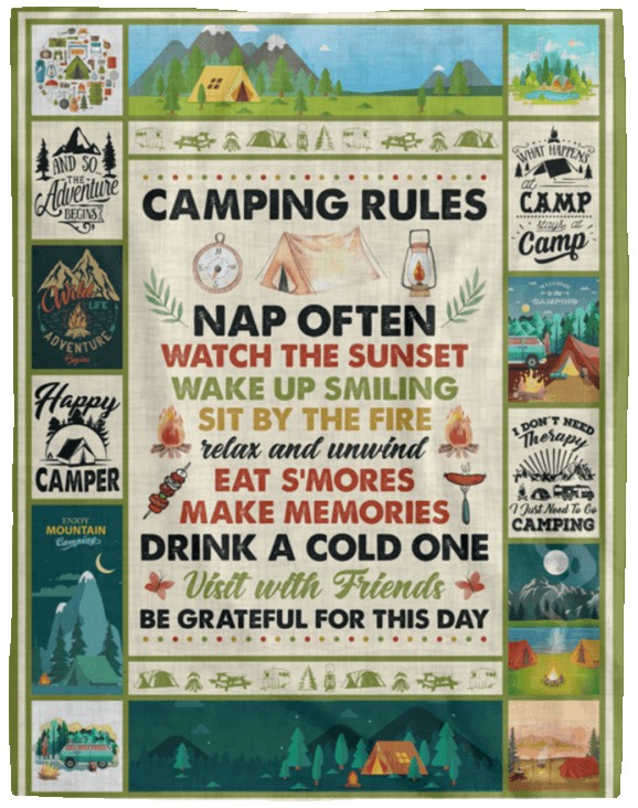 Camping Rules Nap Often Watch The Sunset Wake Up Smiling Fleece & Sherpa Blanket