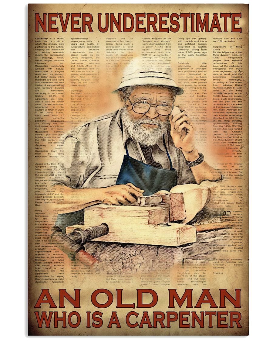 Never Underestimate An Old Men Who Is Carpenter Poster, Canvas
