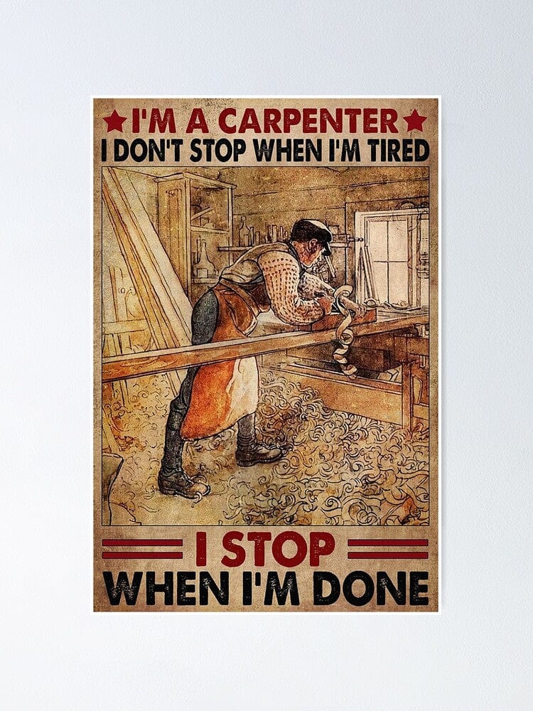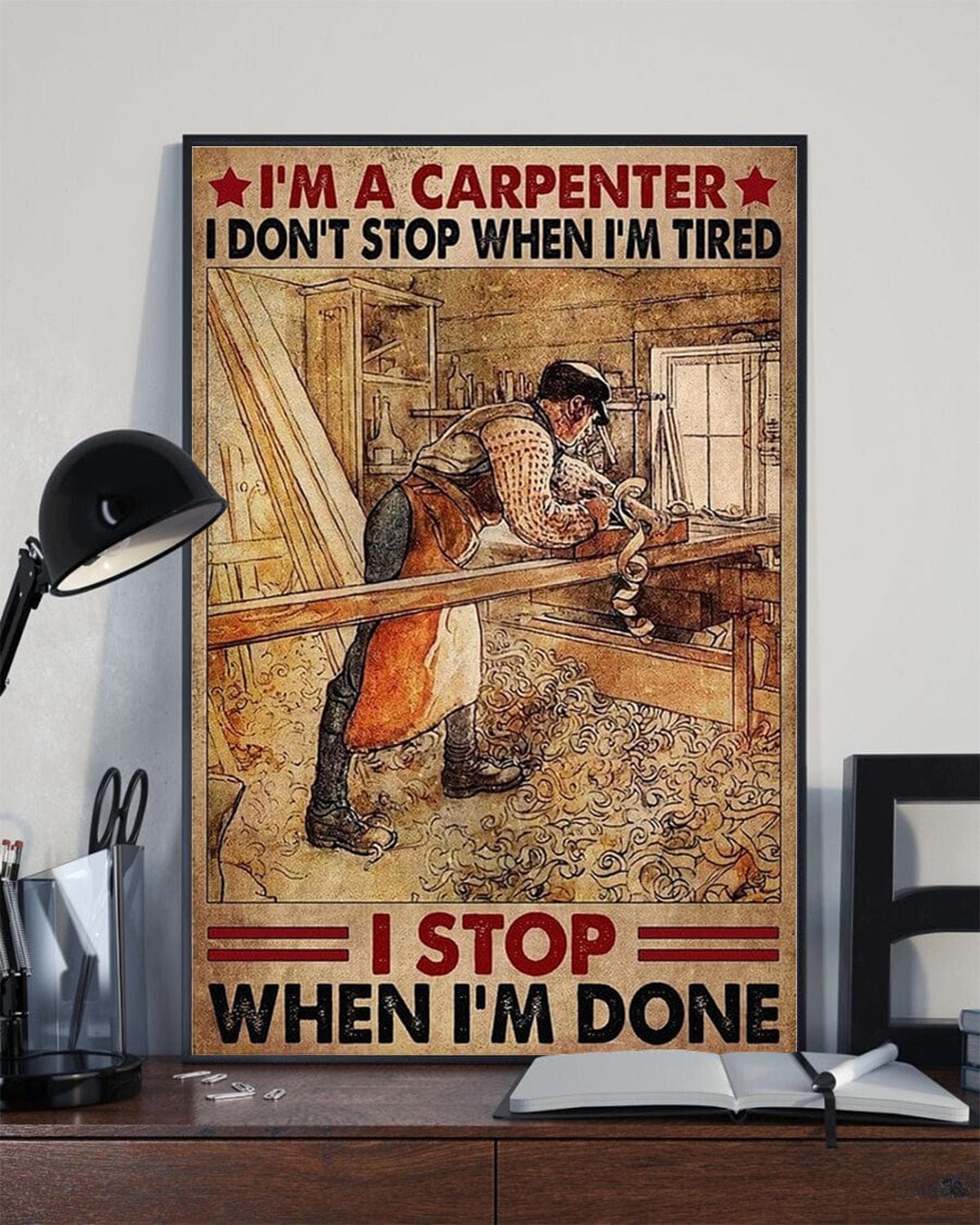 I'm A Carpenter I Don't Stop When I'm Tired I Stop When I'm Done Poster, Canvas