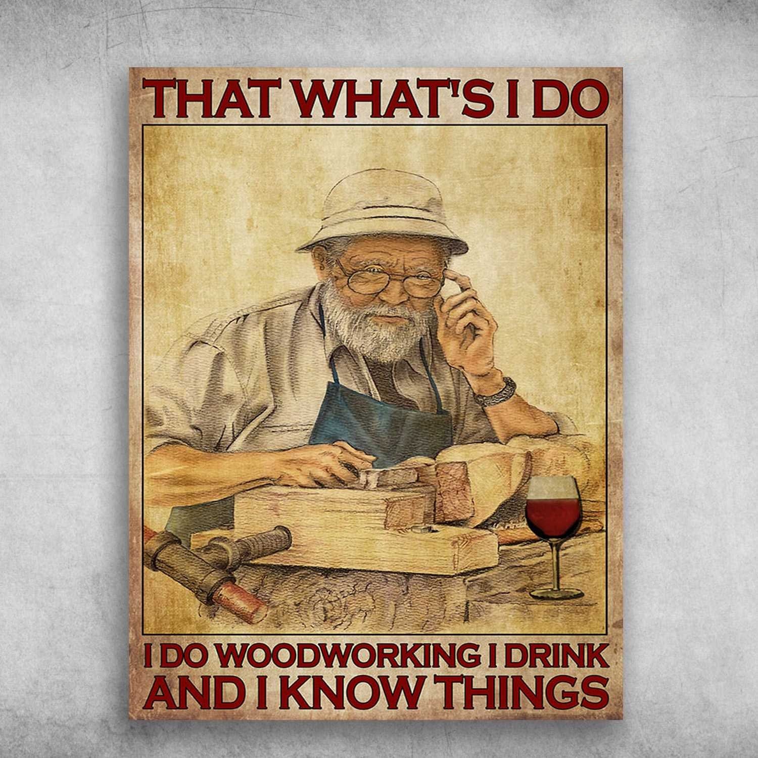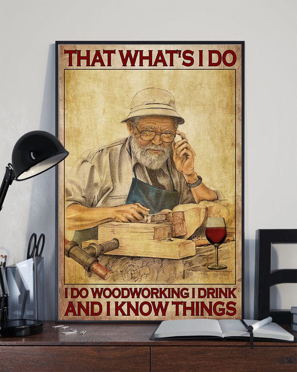 That What’s I Do I Do Woodworking I Drink And I Know Things Old Carpenter, Wine Lover Poster, Canvas