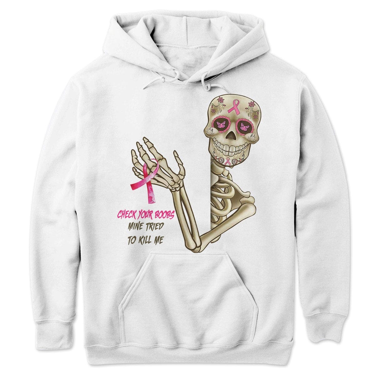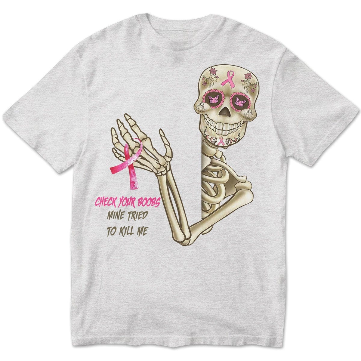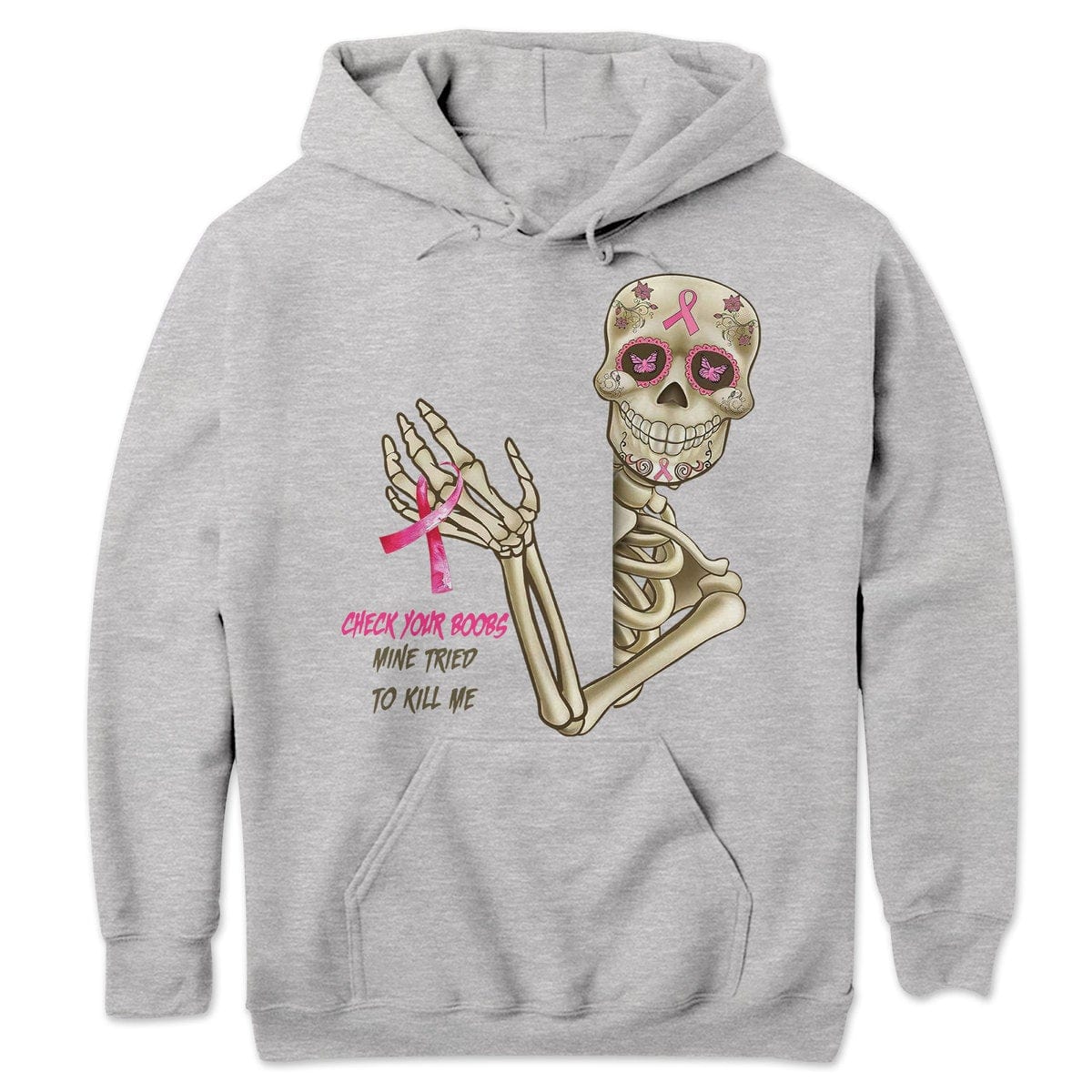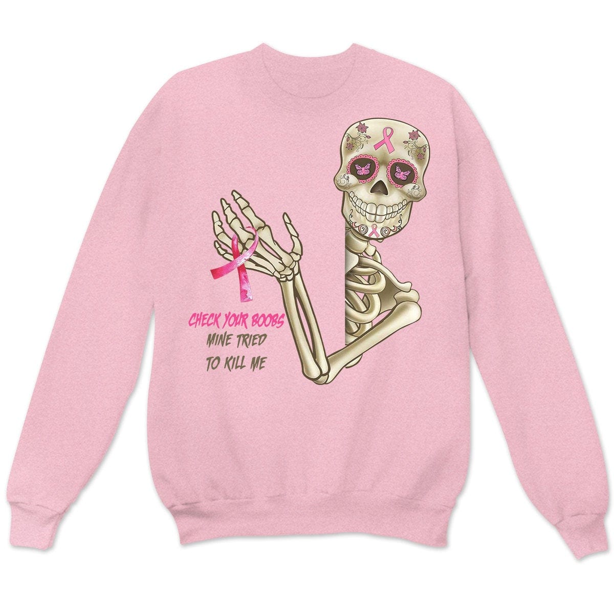 Check Your B00bs Mine Tried To Kill Me, Skeleton Breast Cancer Sweatshirt, Shirts