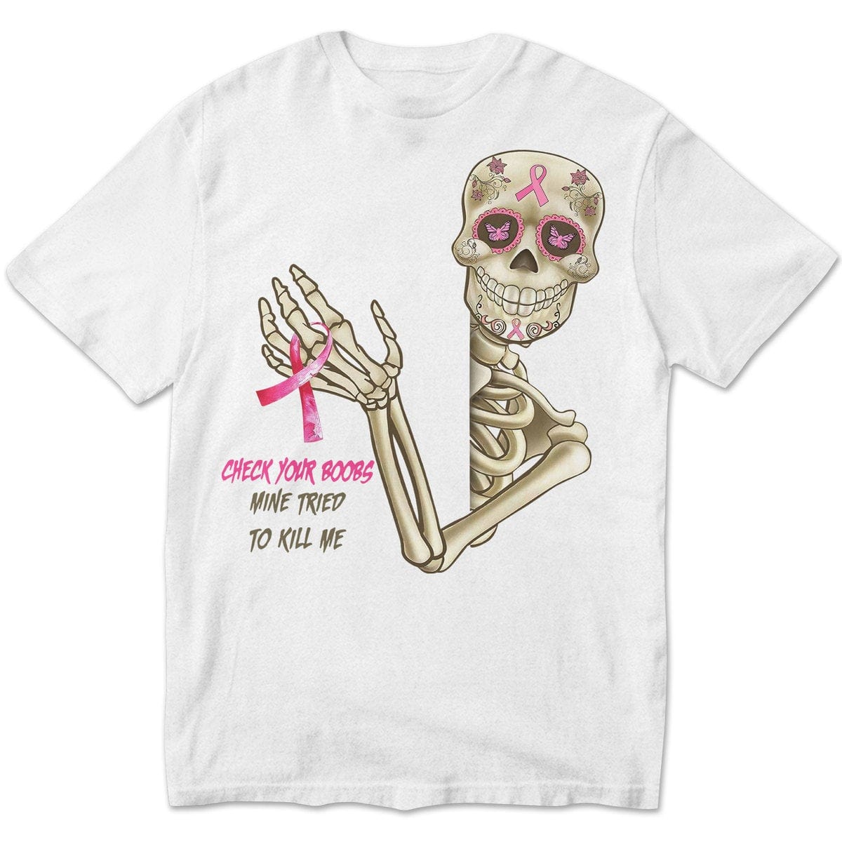 Check Your B00bs Mine Tried To Kill Me, Skeleton Breast Cancer Shirts