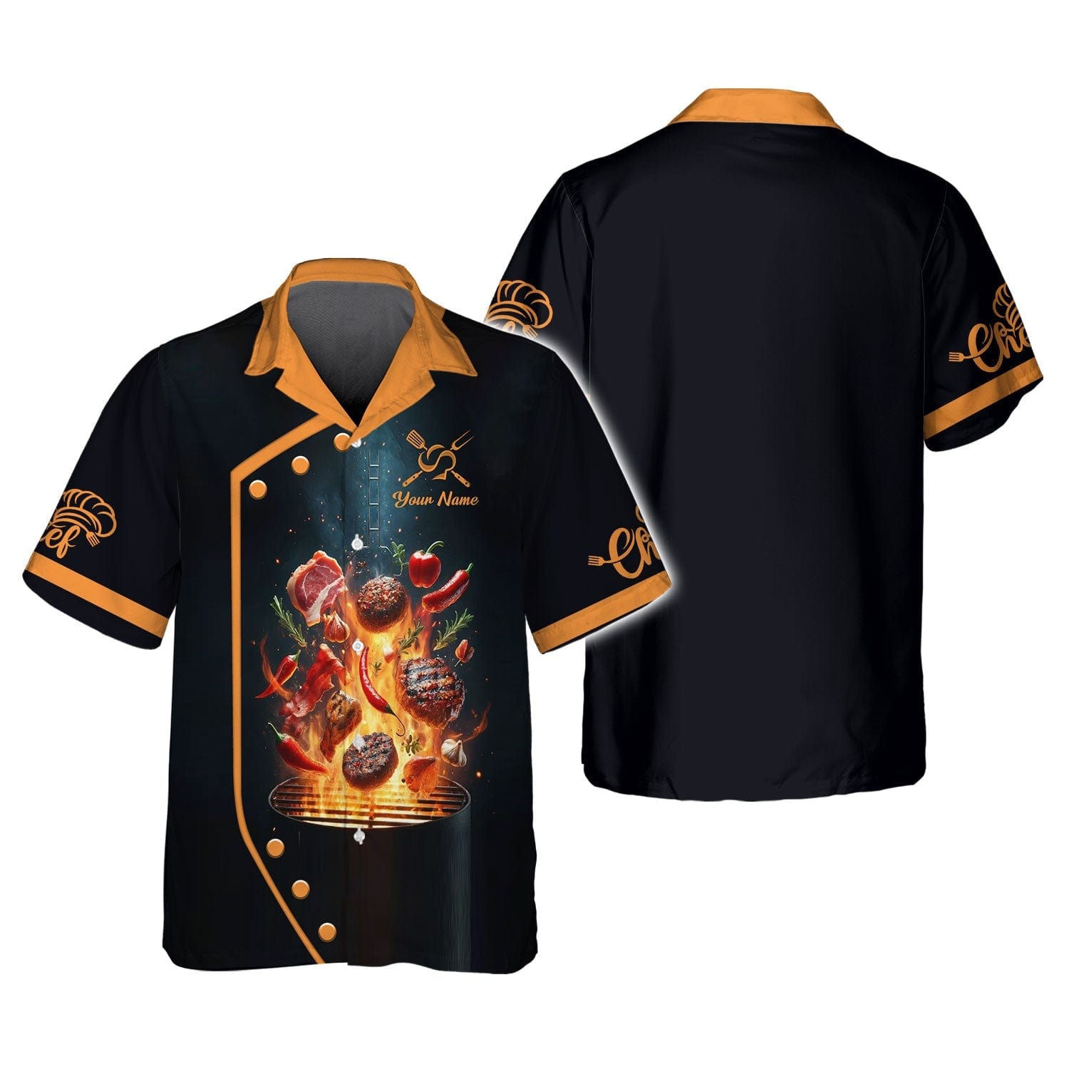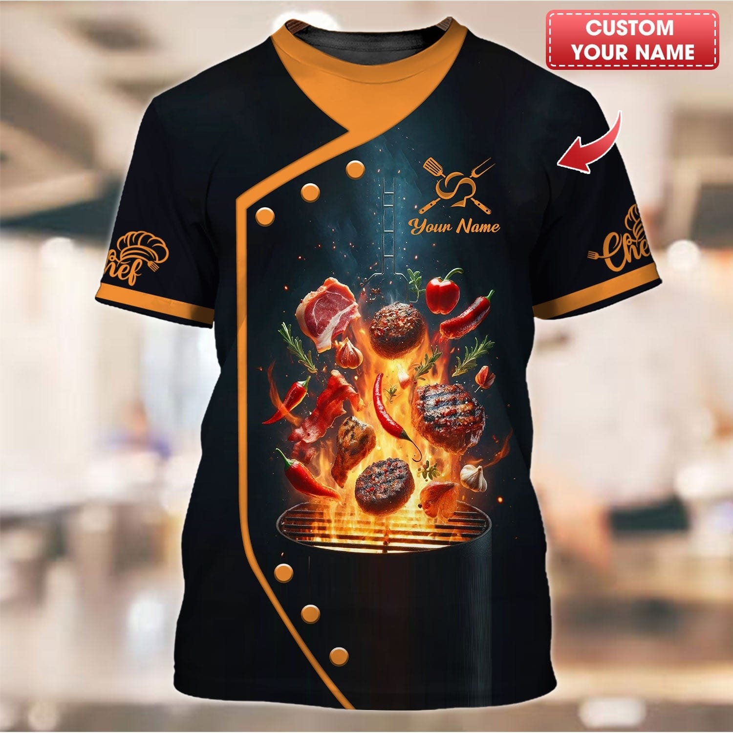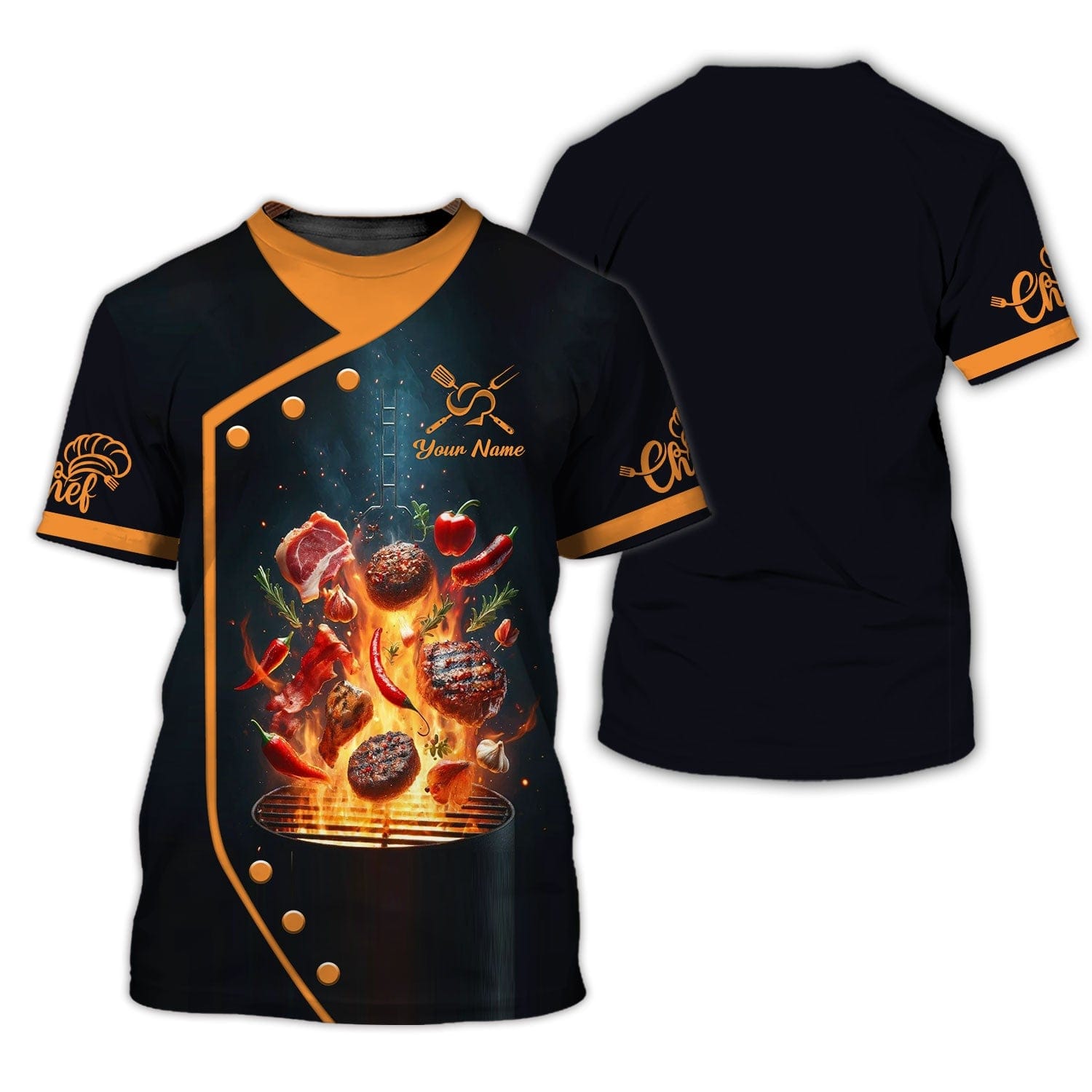 Personalized Chef Shirt - Fiery BBQ Design for Grill Masters, All Over Printed