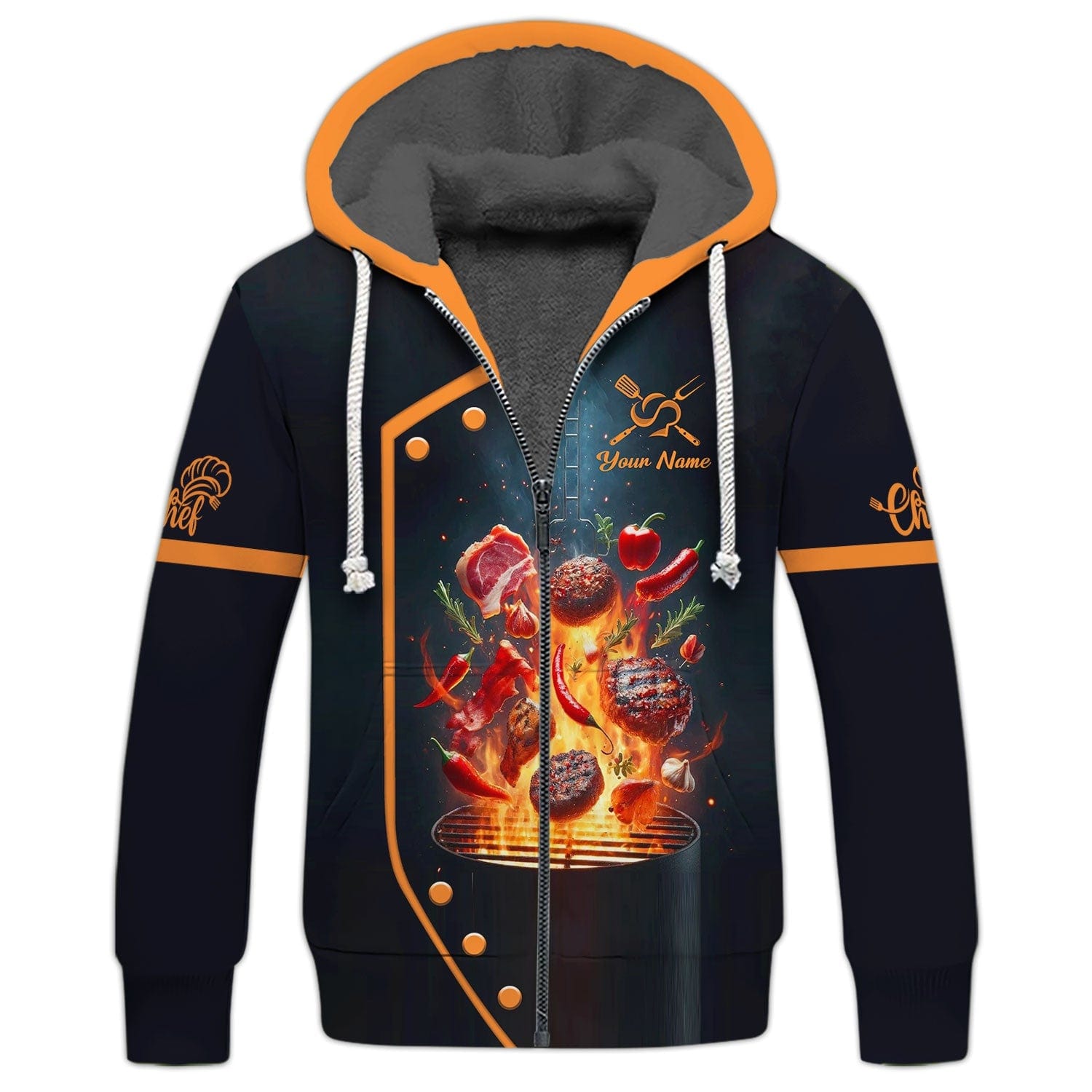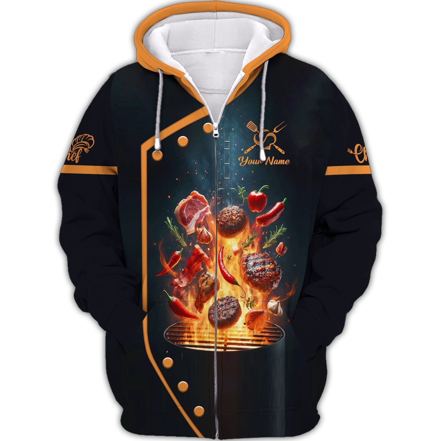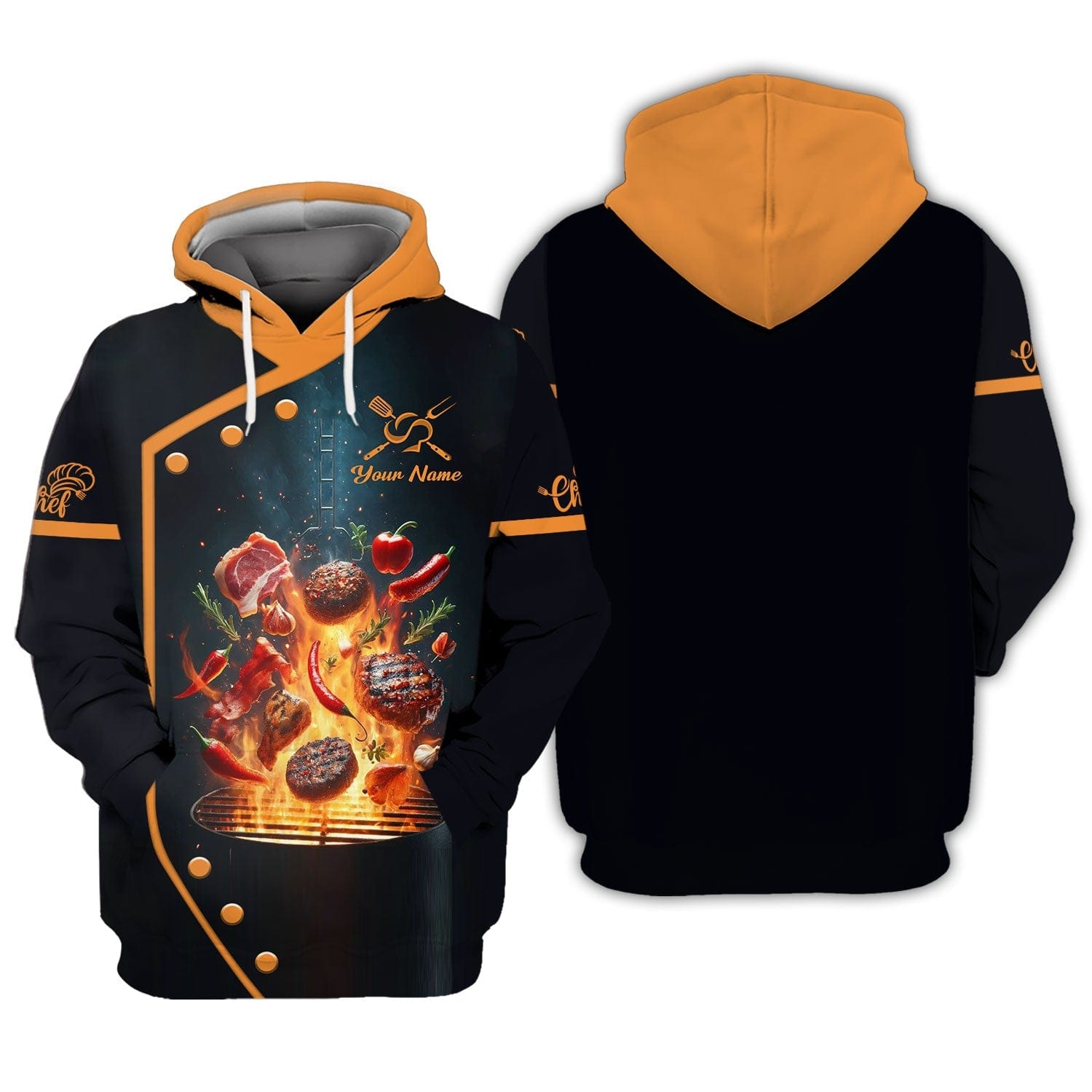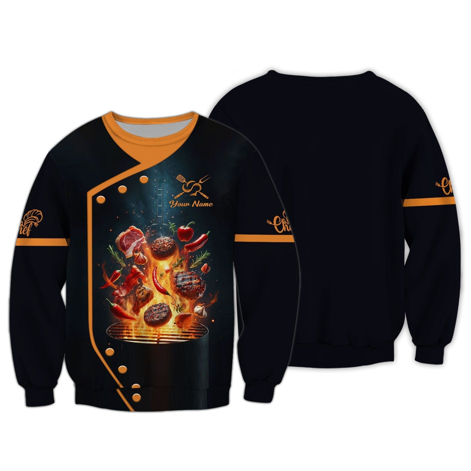 Personalized Chef Shirt - Fiery BBQ Design for Grill Masters, All Over Printed