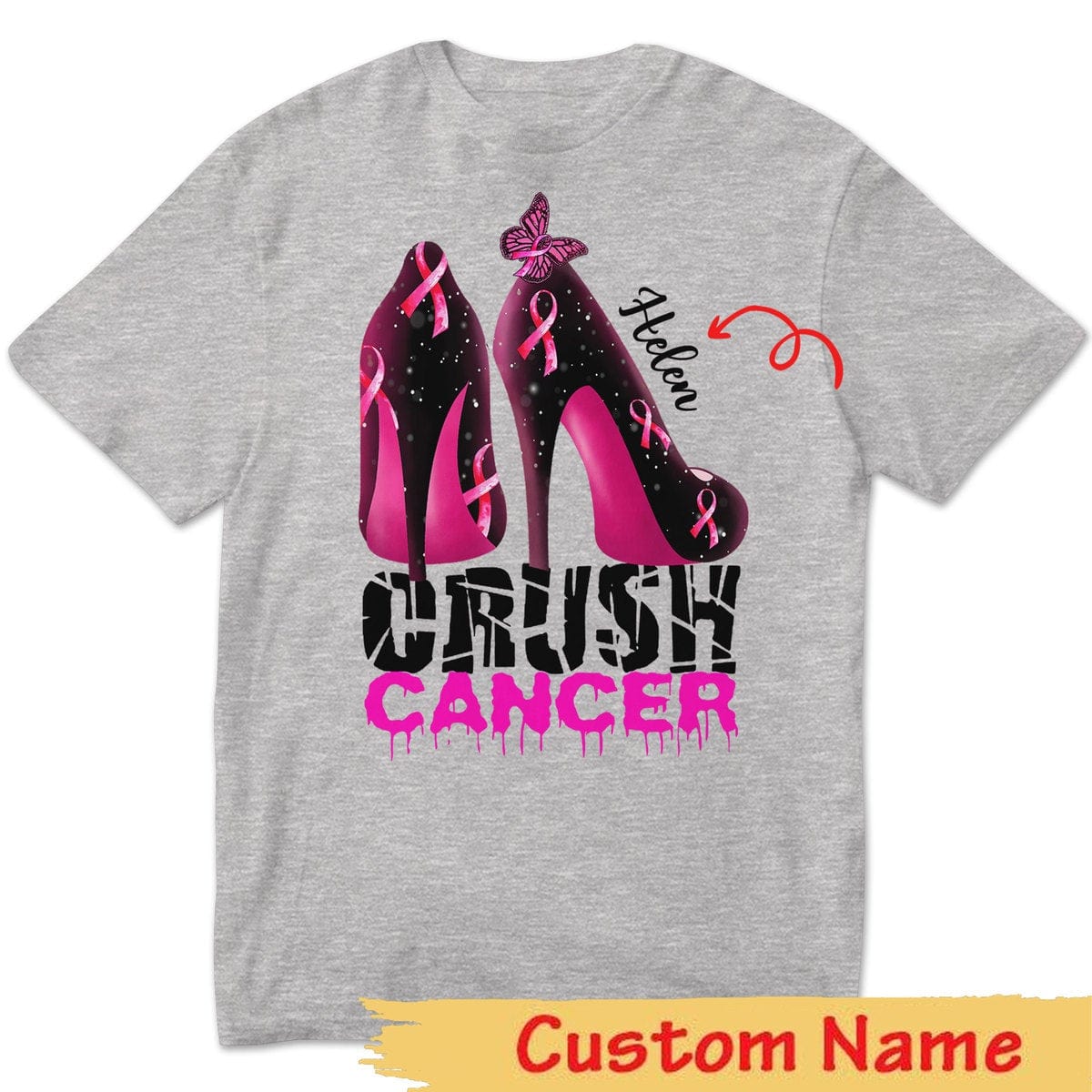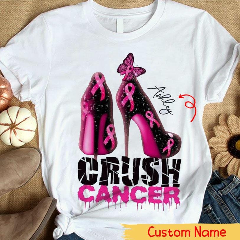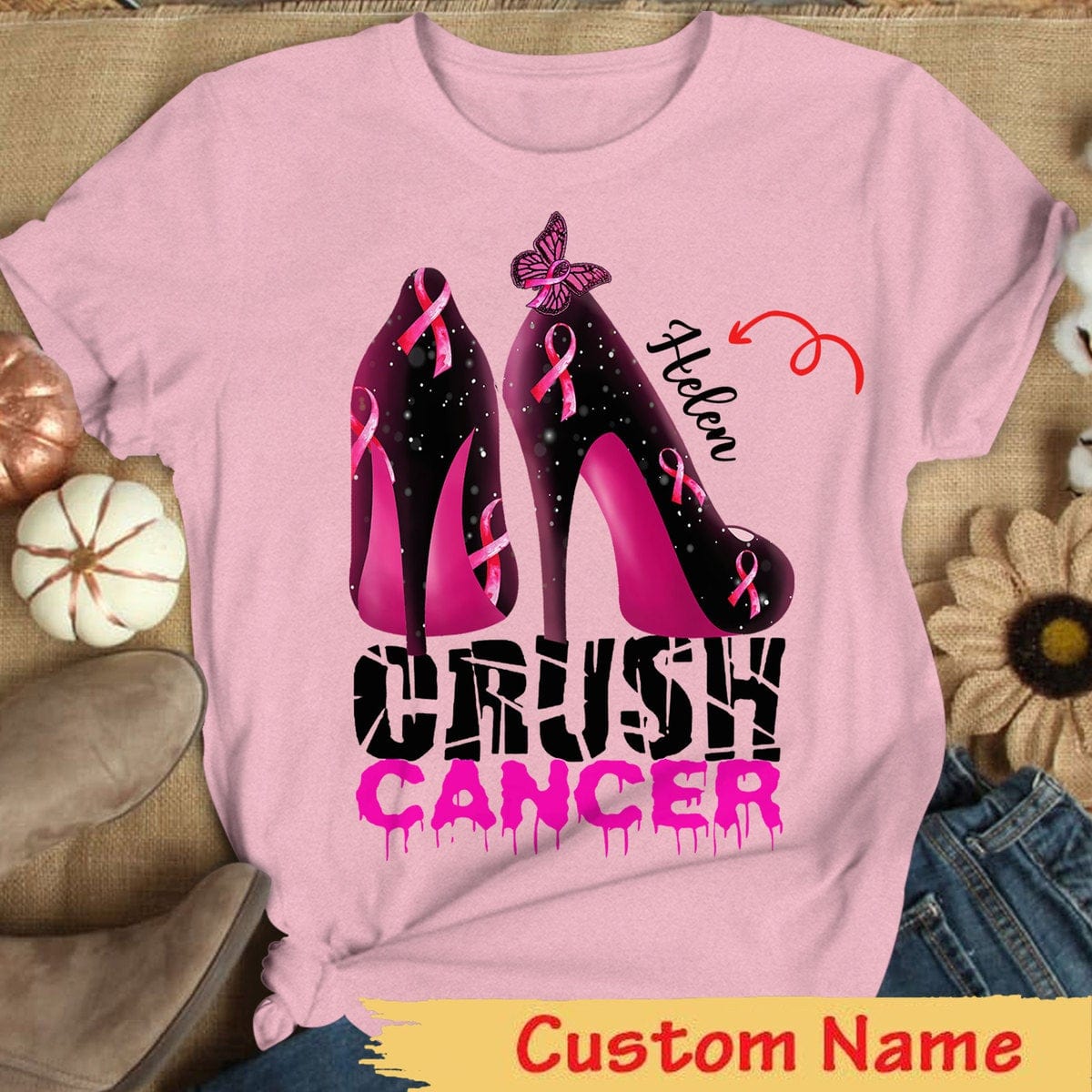 Crush Cancer Pink Ribbon High Heels, Personalized Breast Cancer Hoodie, Shirts