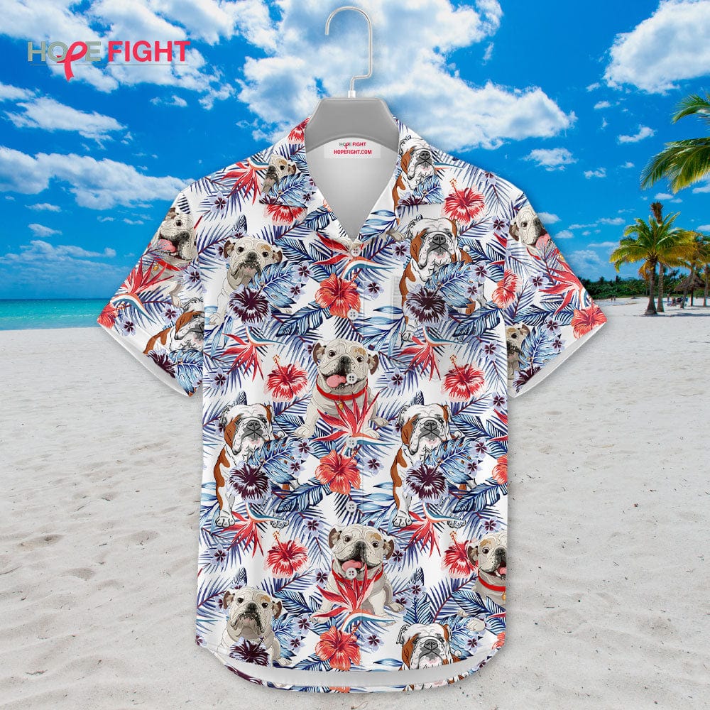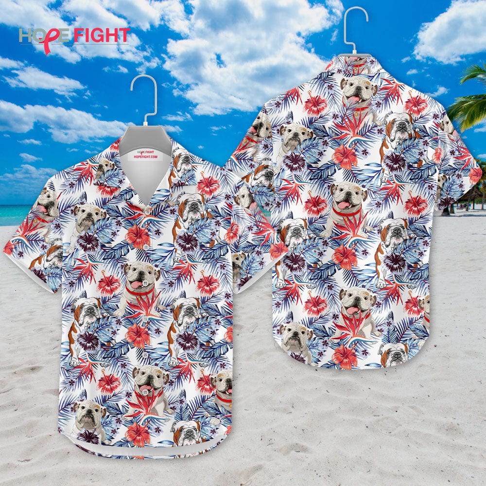 Cute Bulldog Hibiscus Hawaiian Shirt