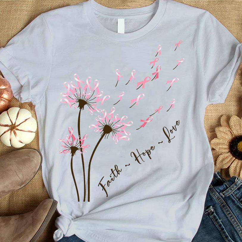 Dandelion Faith Hope Love Breast Cancer Awareness Sweatshirt, Shirts