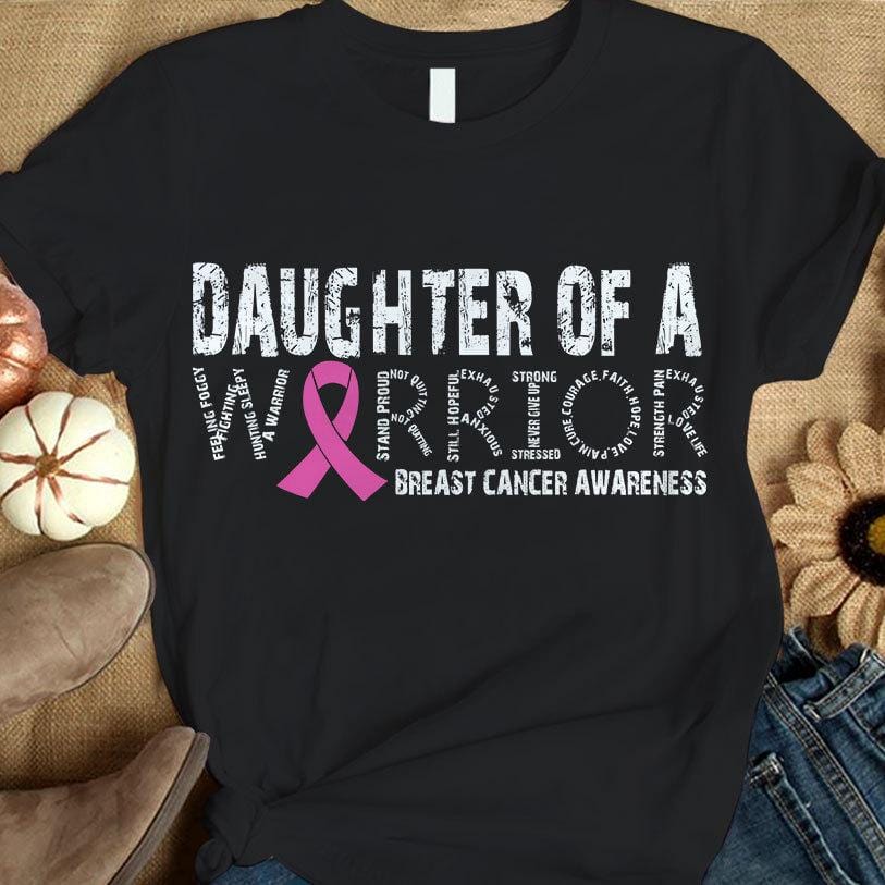 Daughter Of A Warrior, Pink Ribbon, Breast Cancer Survivor Awareness Shirt
