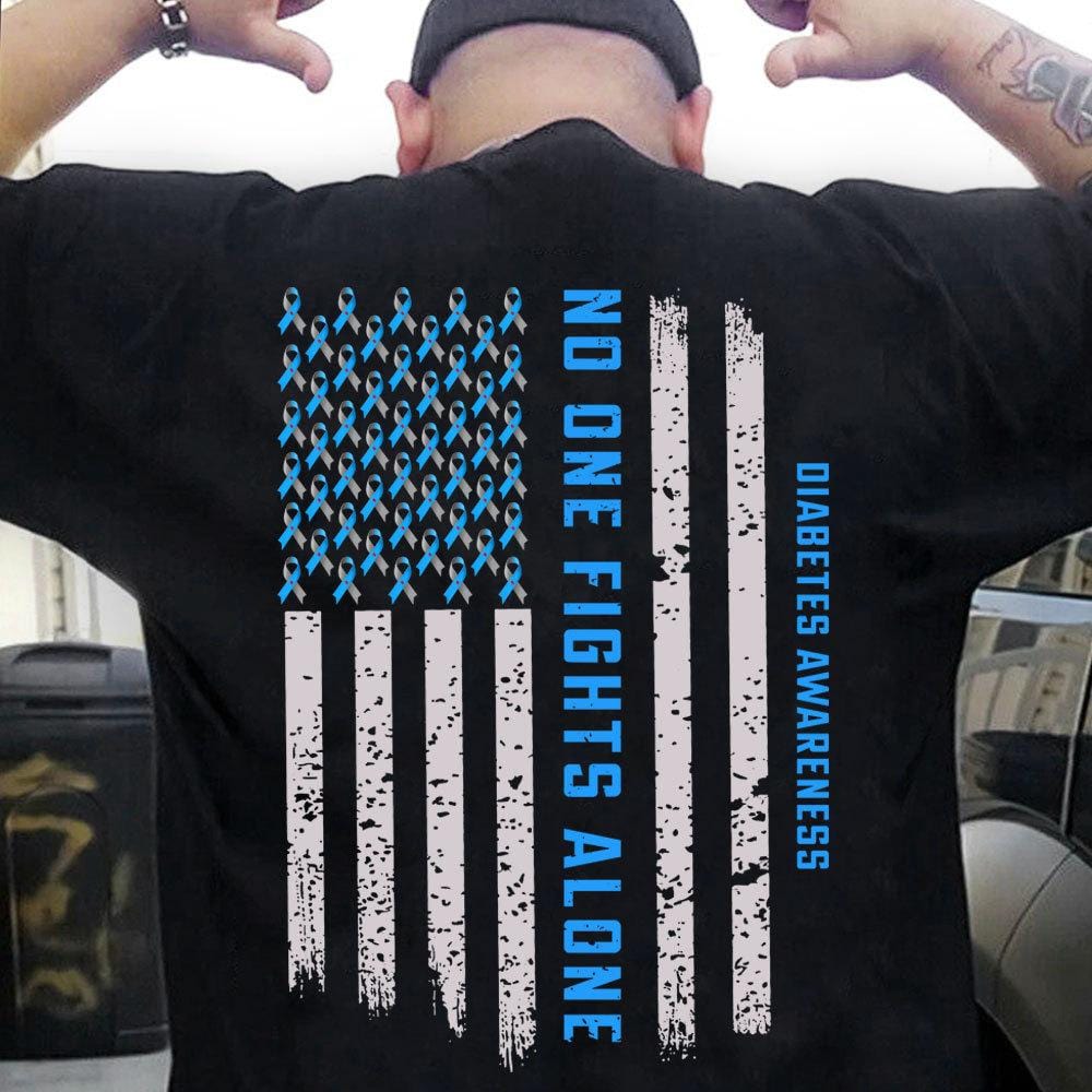 Diabetes Awareness Support Shirt, No One Fights Alone Ribbon American Flag