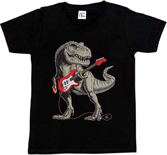 Fancy A Snuggle Boys T-rex Dinosaur Playing Guitar Shirt