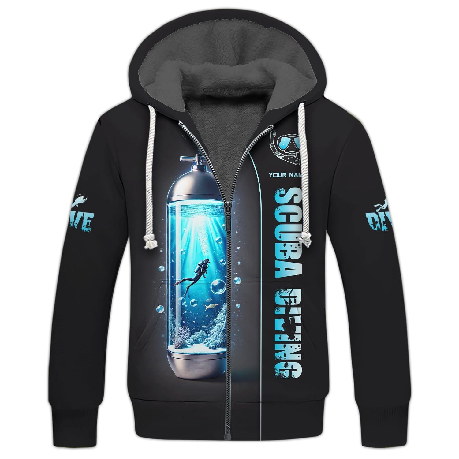 Diver With Diving Tank Custom Name 3D Shirt Born To Dive Personalized Gift For Diver Lovers, All Over Printed