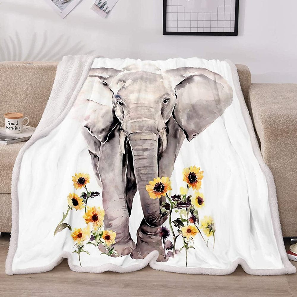 Elephant & Sunflower Fleece & Sherpa Blanket