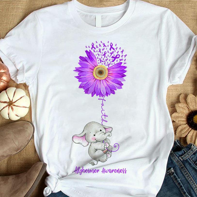 Alzheimer's Awareness T Shirts With Elephant And Sunflower