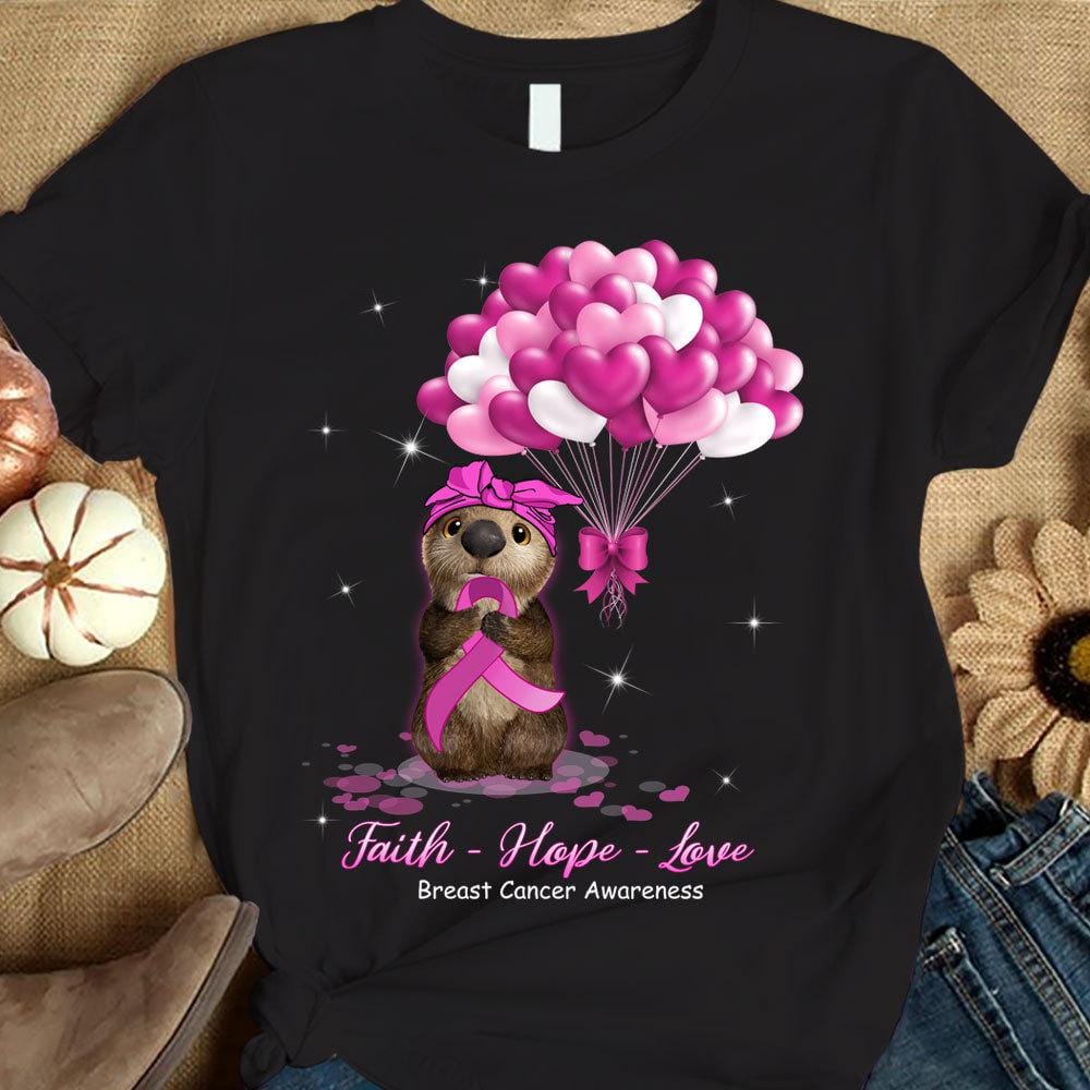 Faith Hope Love, Breast Cancer Warrior Awareness Shirt, Pink Mouse Balloon