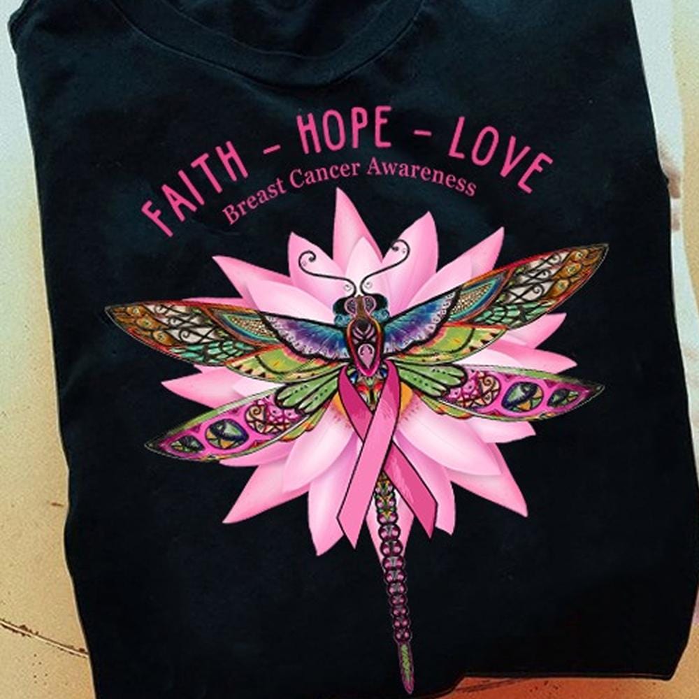 Faith Hope Love With Dragonfly Lotus, Breast Cancer Shirts