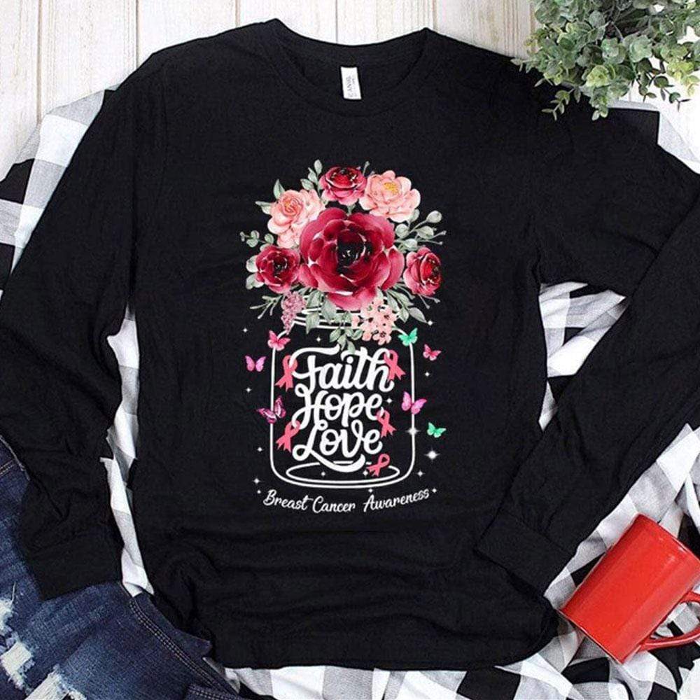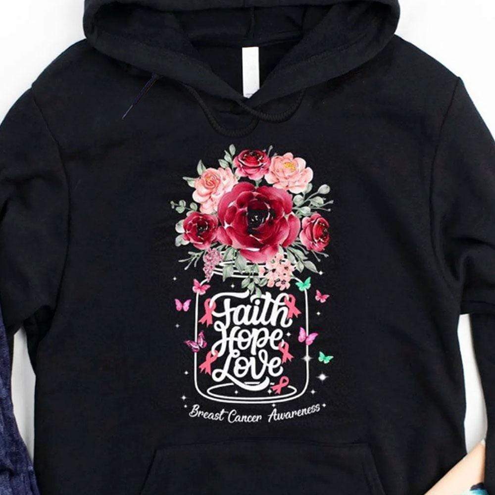 Faith Hope Love With Flowers Breast Cancer Hoodie, Shirt