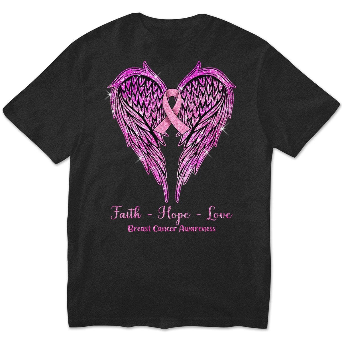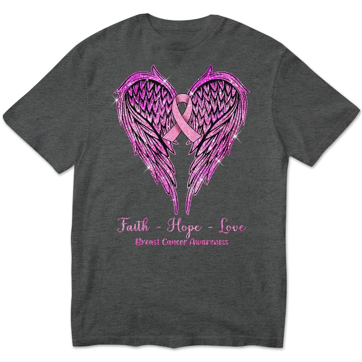 Faith Hope Love With Wings Heart & Ribbon, Breast Cancer Long Sleeve Shirts
