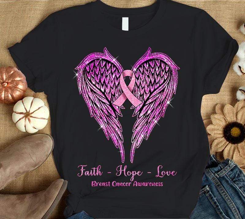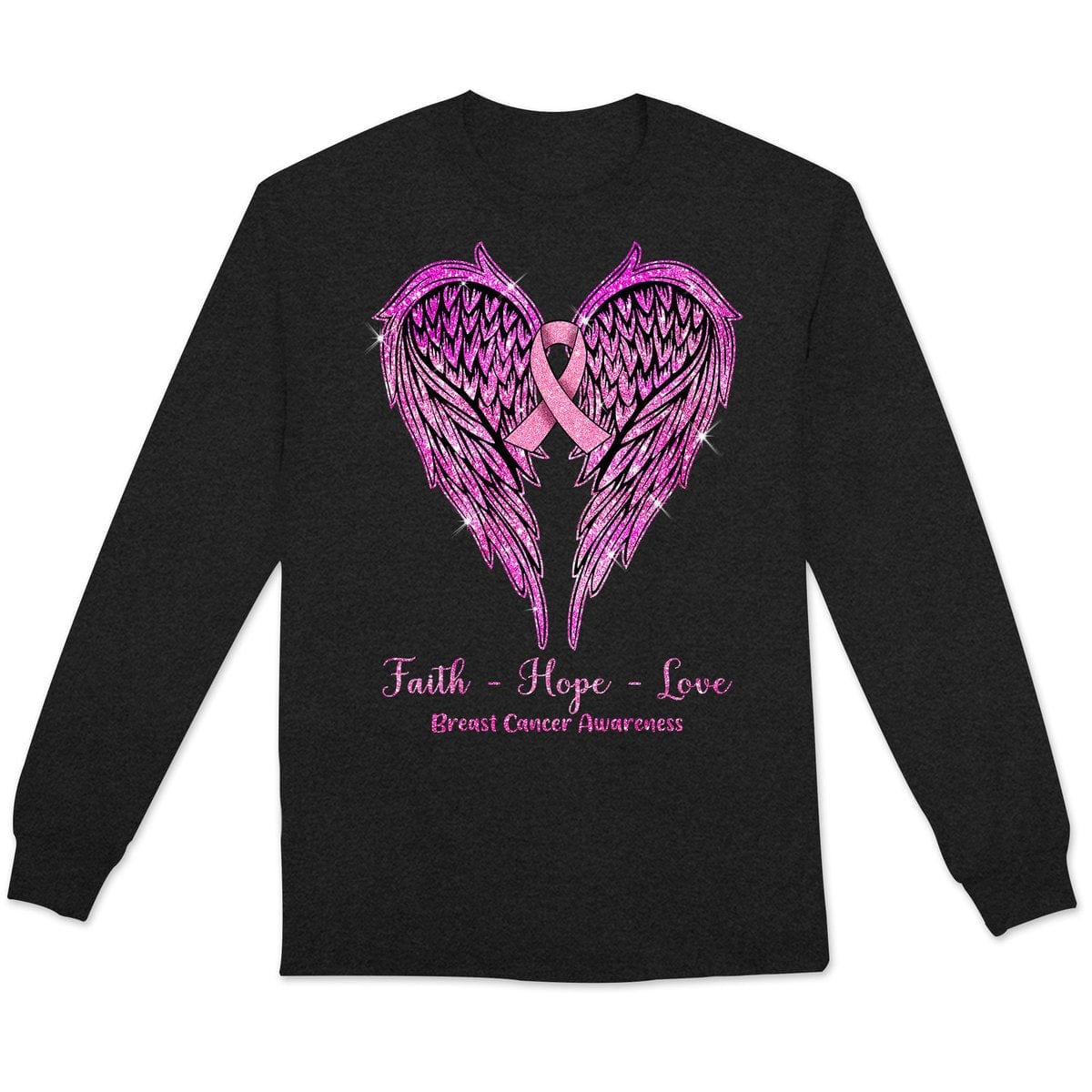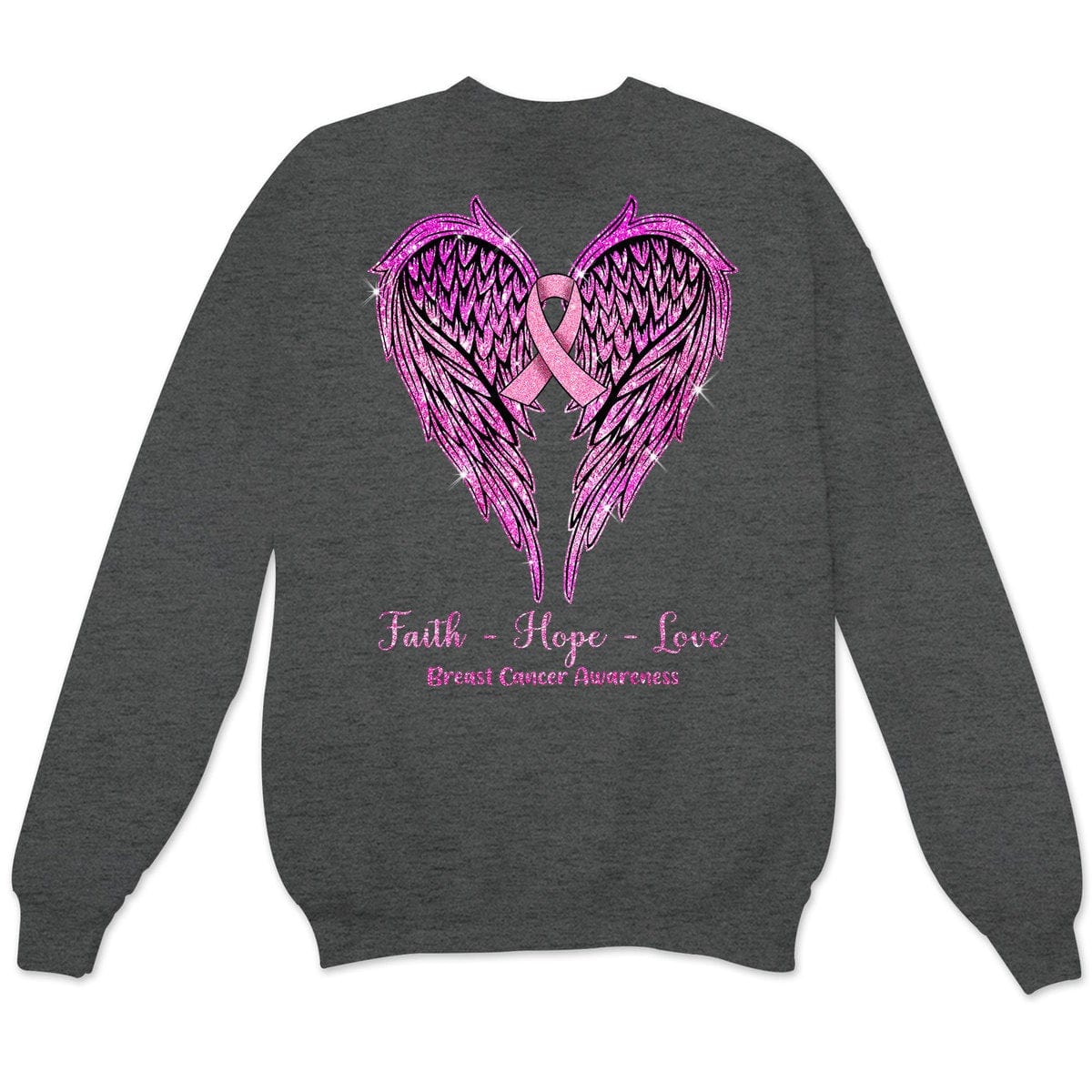 Faith Hope Love With Wings Heart & Ribbon, Breast Cancer Sweatshirt, Shirts