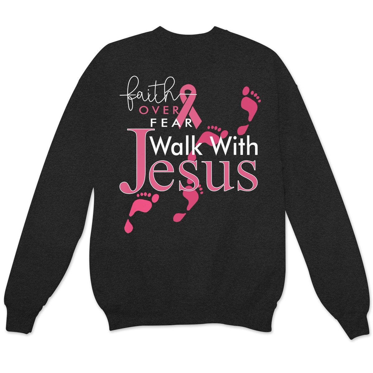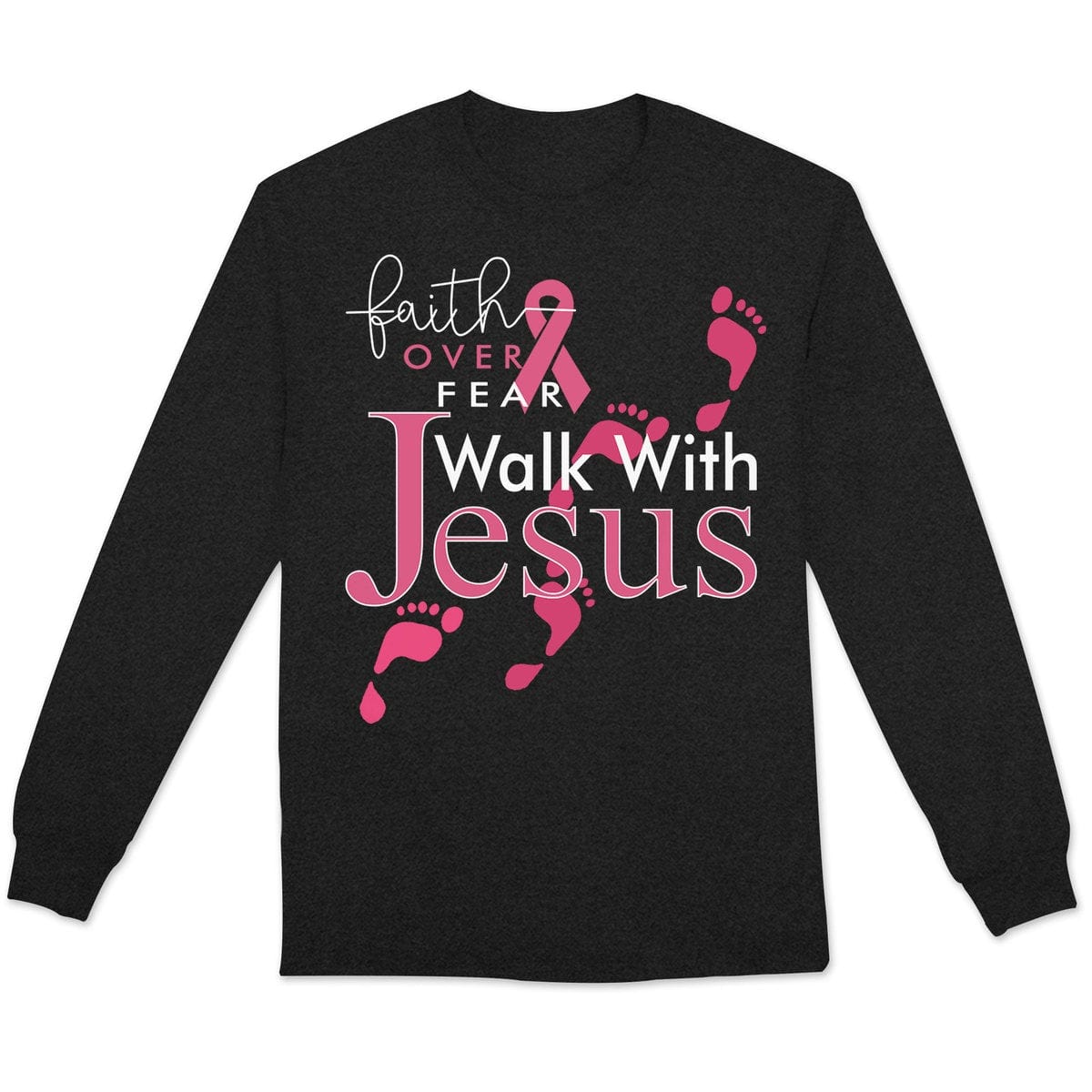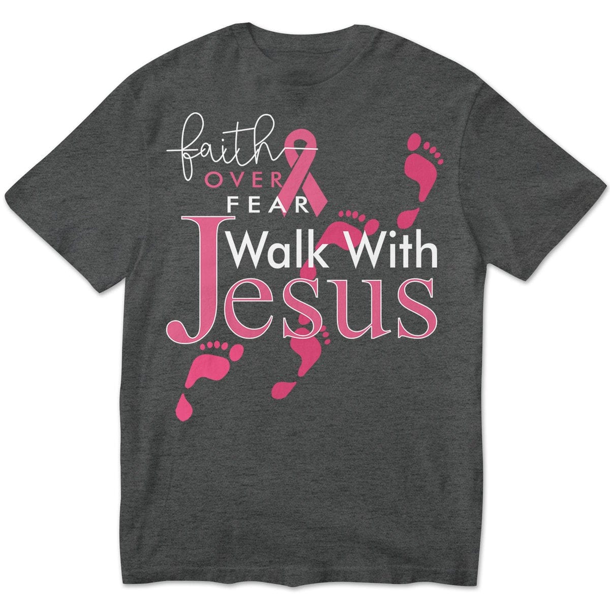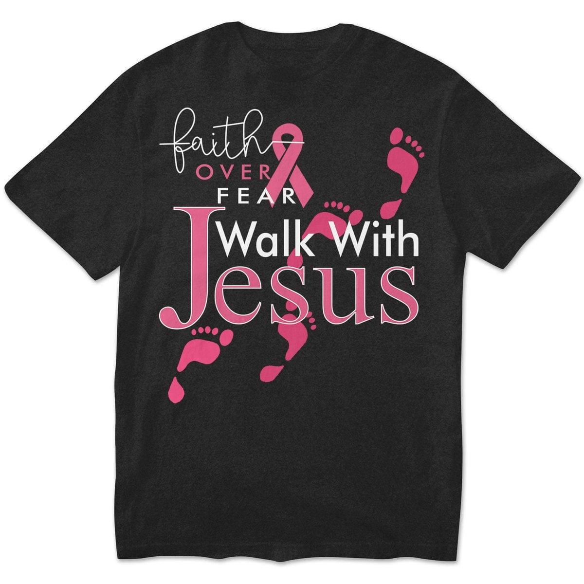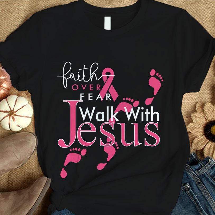 Faith Over Fear Walk With Jesus, Pink Ribbon, Breast Cancer Sayings Awareness Shirt