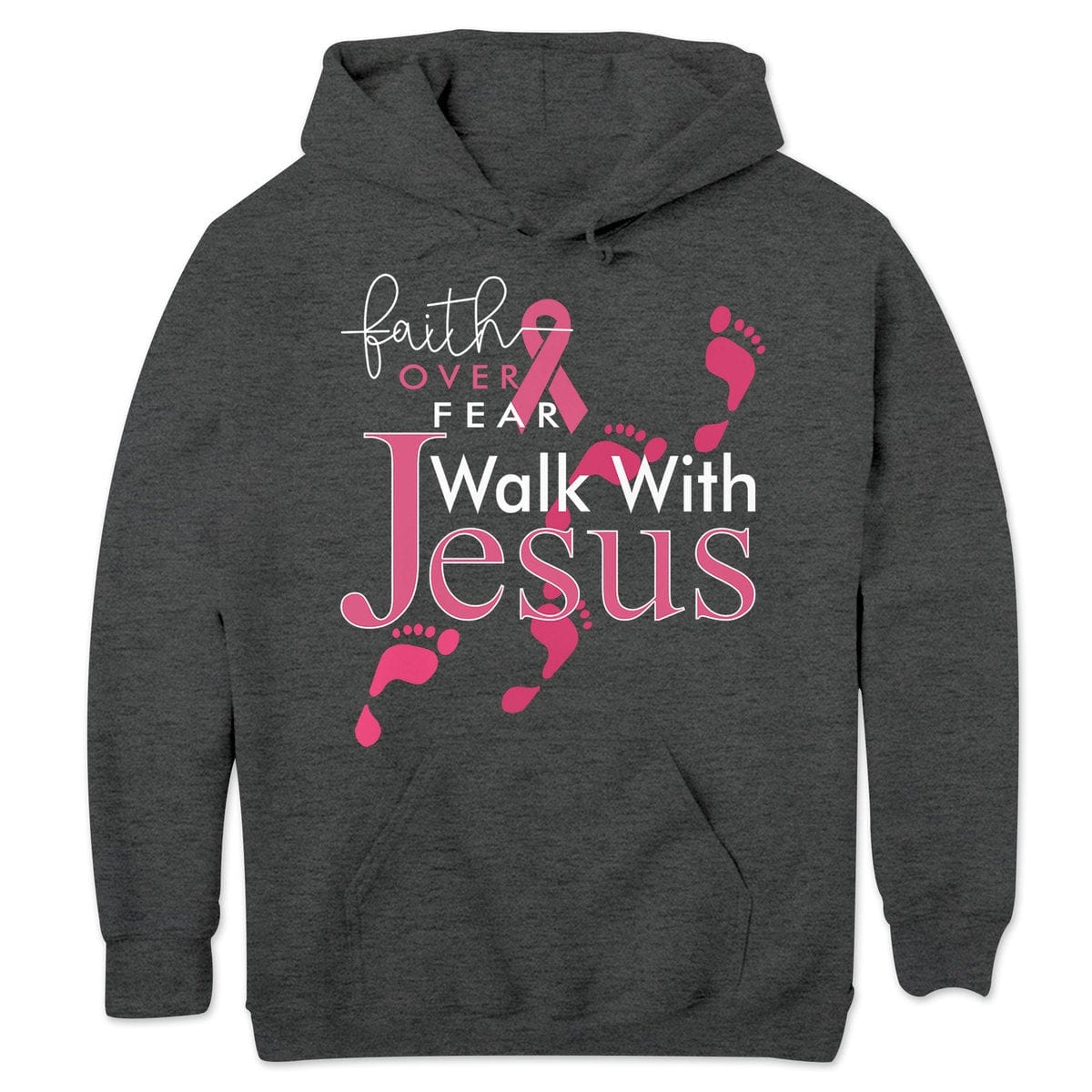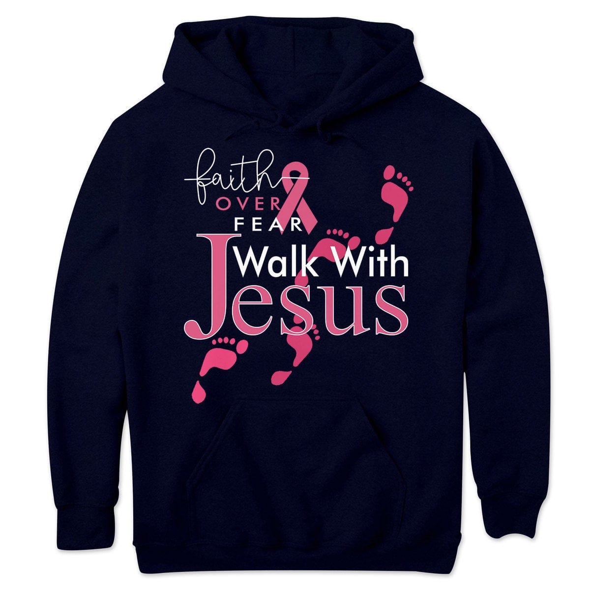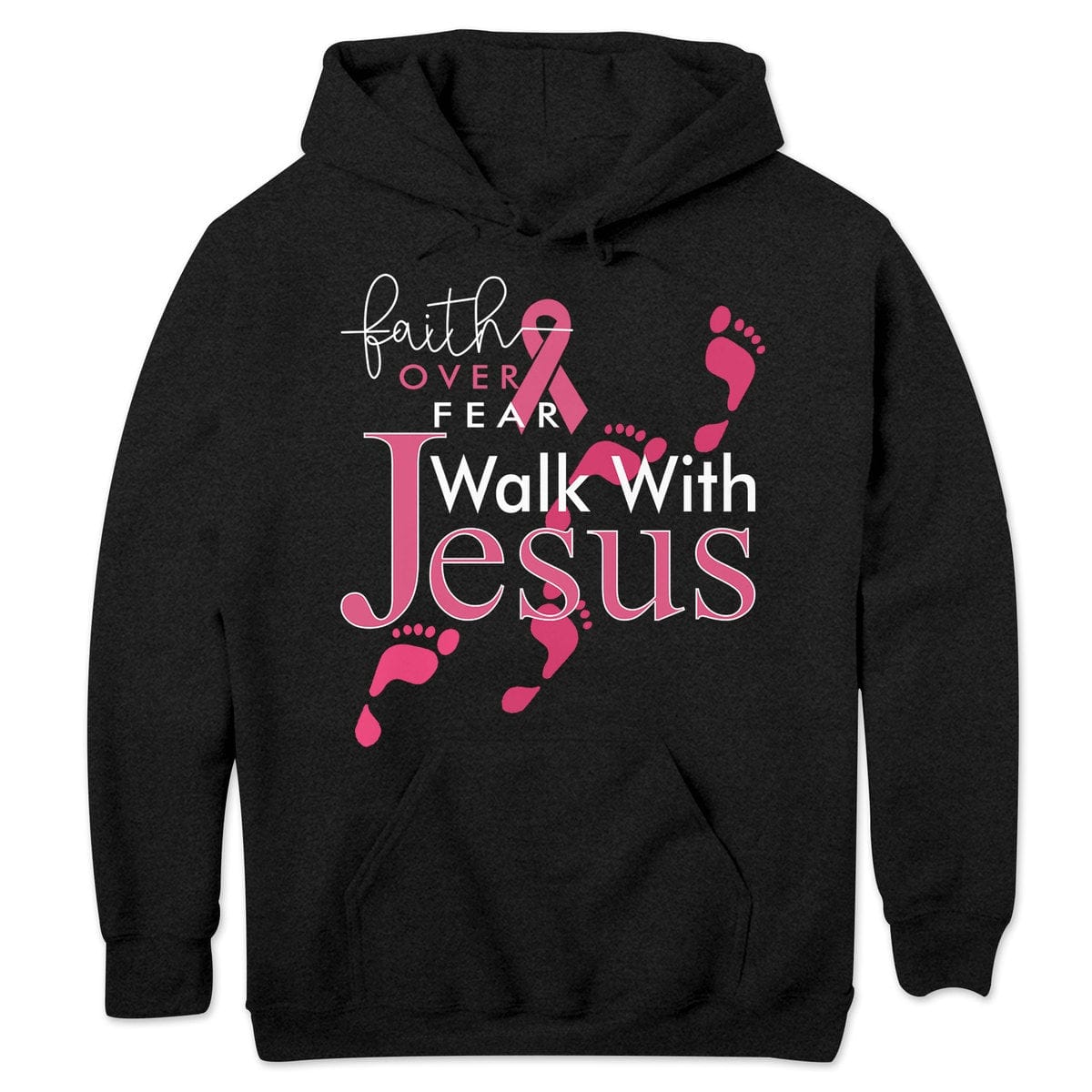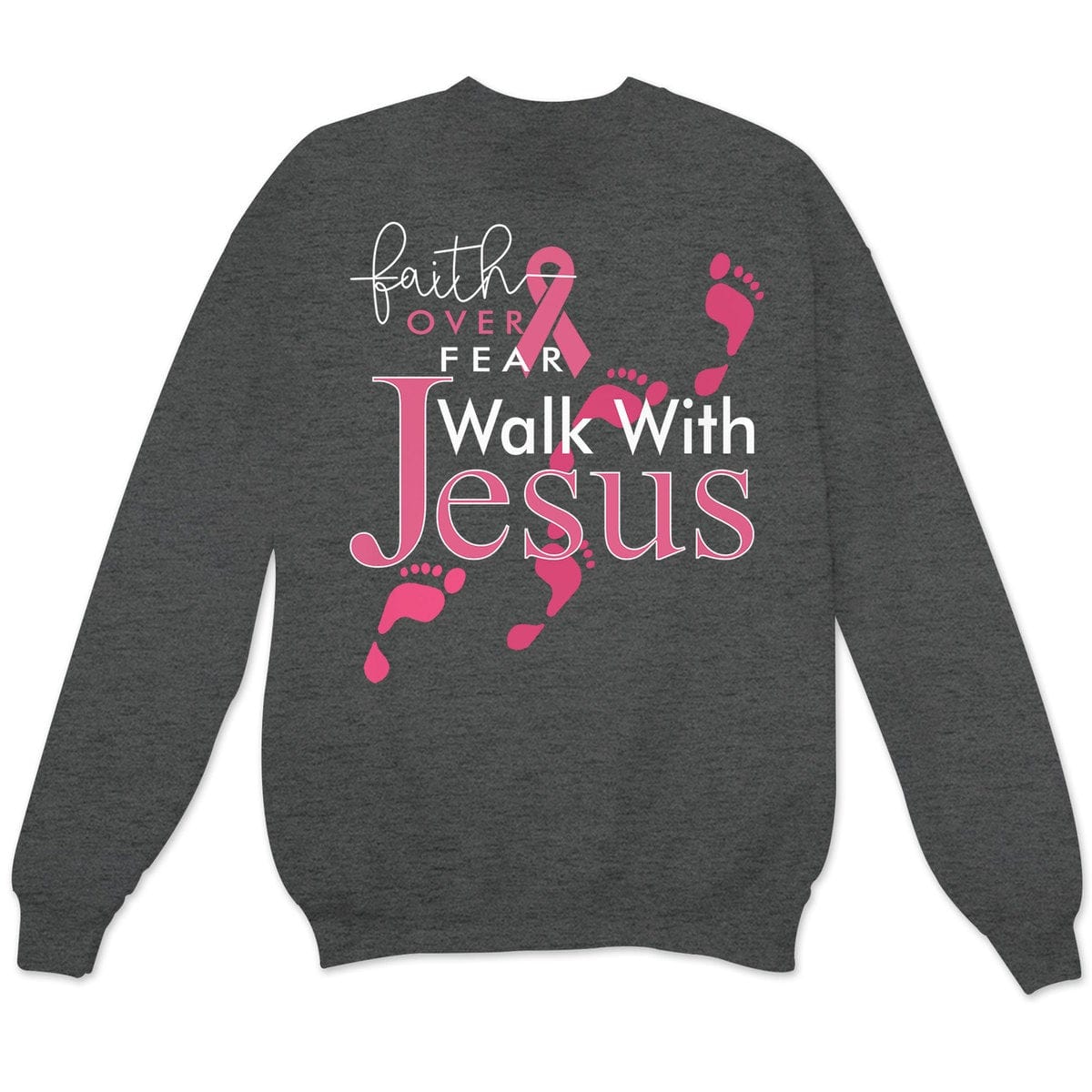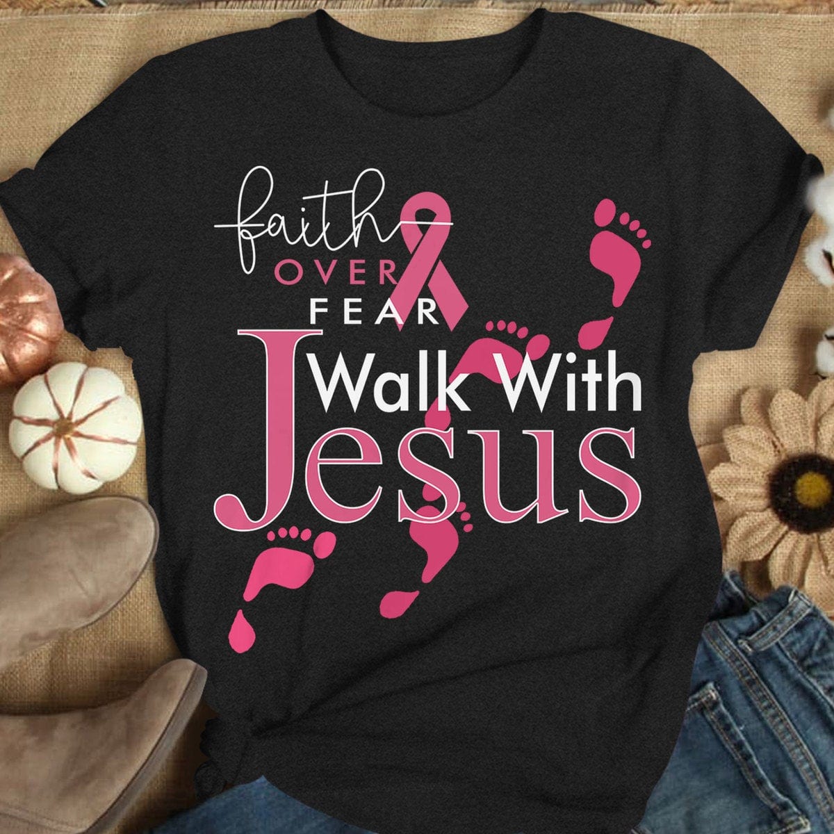 Faith Over Fear Walk With Jesus, Pink Ribbon, Breast Cancer Sayings Awareness Shirt
