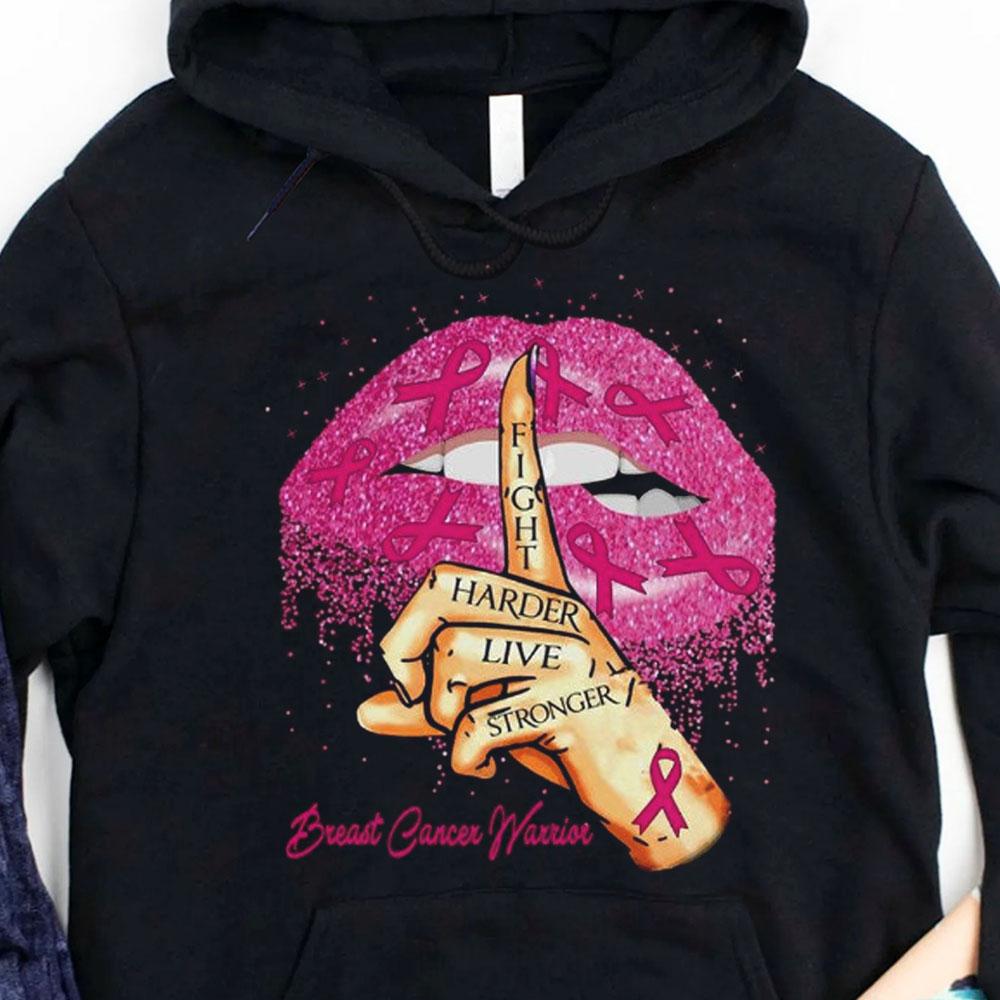Fight Harder Live Stronger Breast Cancer Hoodie, Shirt