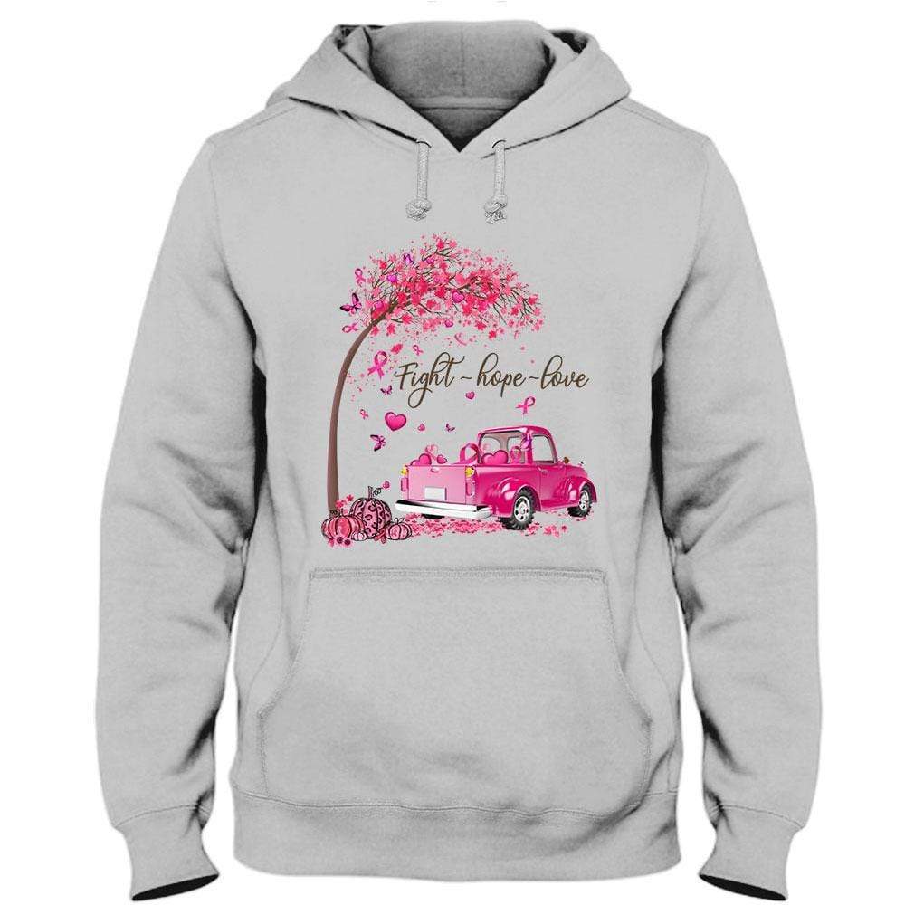 Fight Hope Love, Pink Ribbon Tree & Car Breast Cancer Hoodie, Shirt