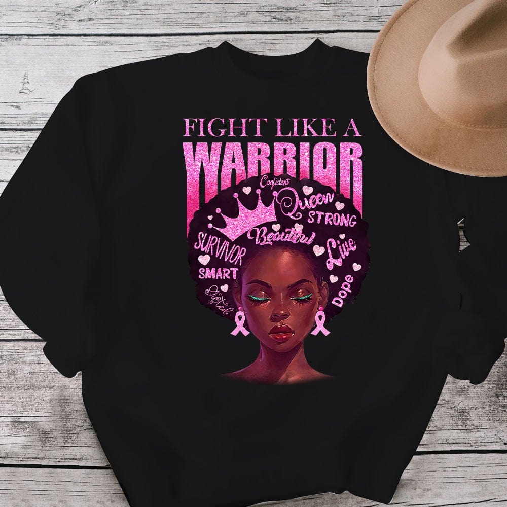 Fight Like A Warrior, Afro Black Woman Breast Cancer Sweatshirt, Shirts