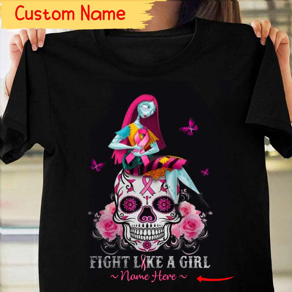 Fight Women With Skull And Pink Ribbon, Personalized Breast Cancer Shirts