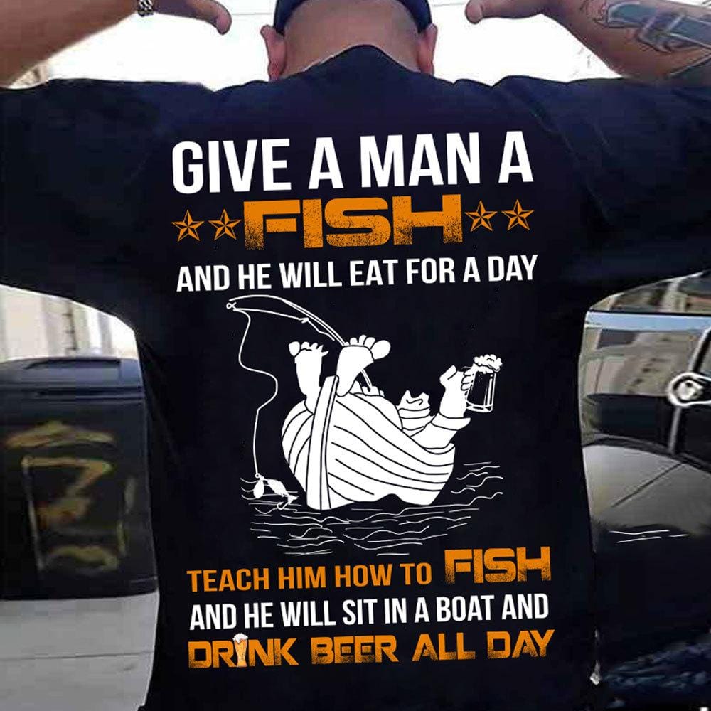 Funny Fishing Shirts For Men Teach Him How To Fish He Drink Beer All Day