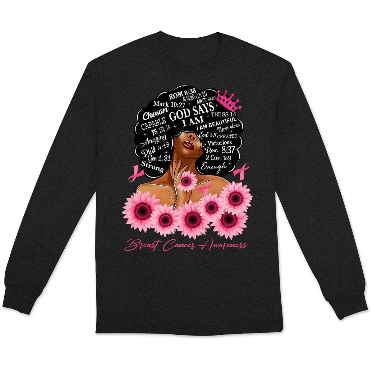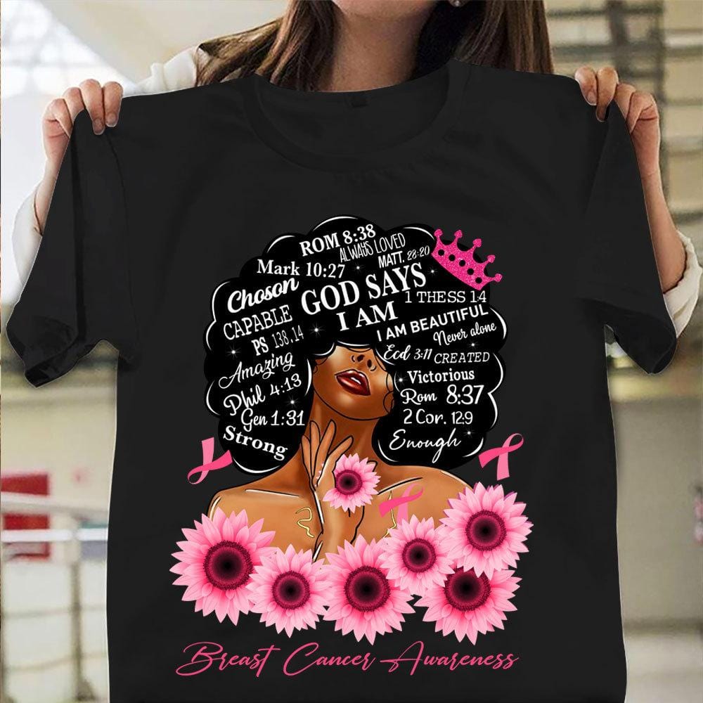 God Says I Am Strong, Breast Cancer Warrior Awareness Shirt, Ribbon Sunflower Woman