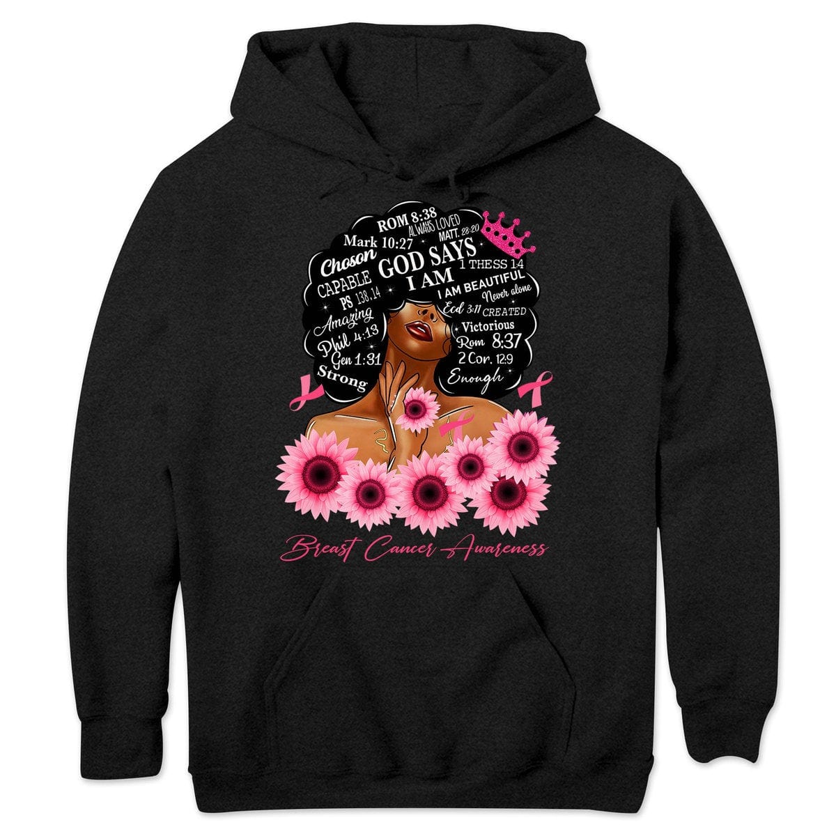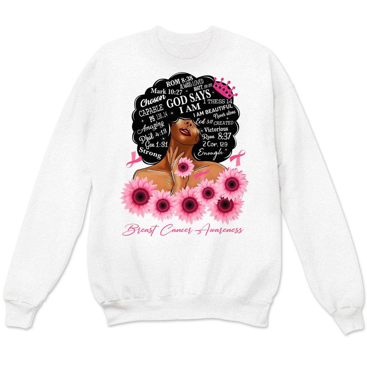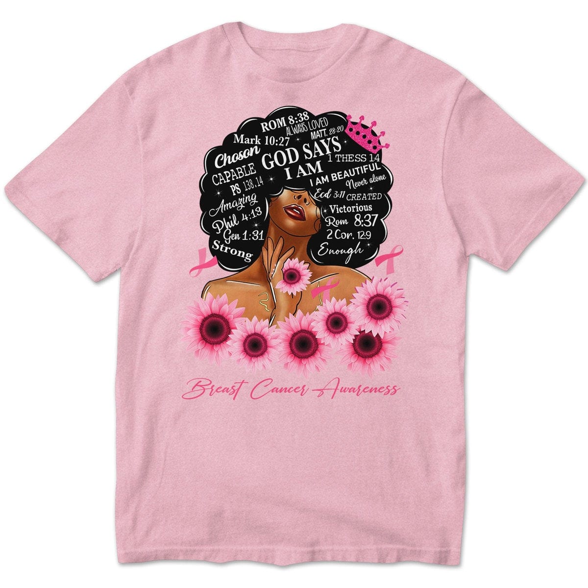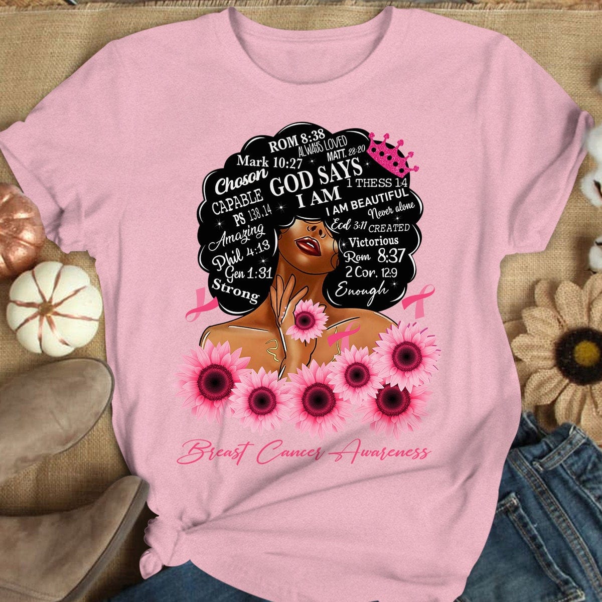 God Says I Am Strong Ribbon Sunflower, Breast Cancer Warrior T Shirts