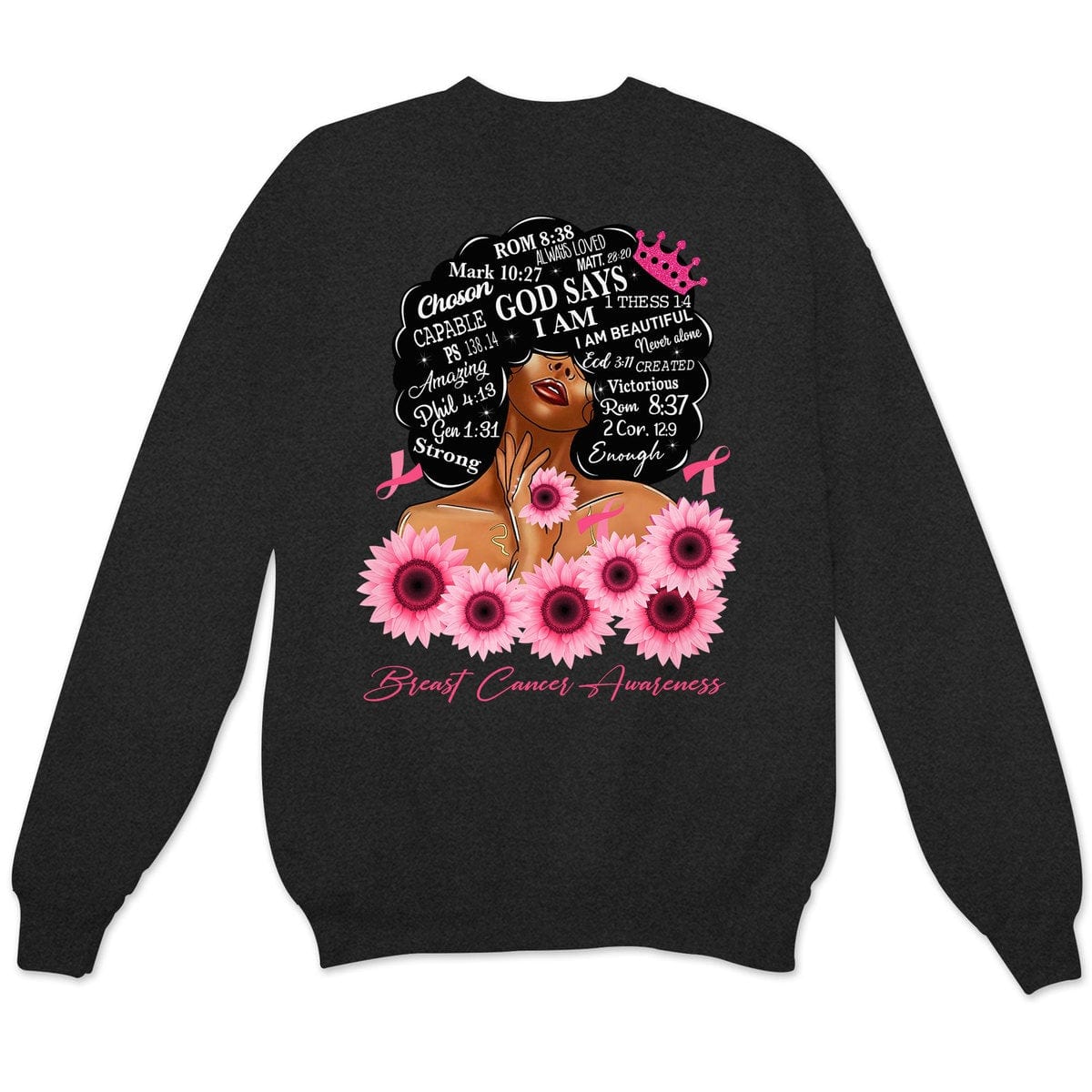 God Says I Am Strong, Ribbon Sunflower Woman Breast Cancer Survivor Hoodie, Shirt
