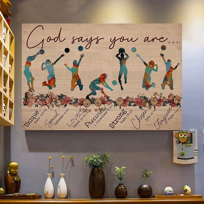 God Says You Are Unique Special Strong Volleyball Poster, Canvas