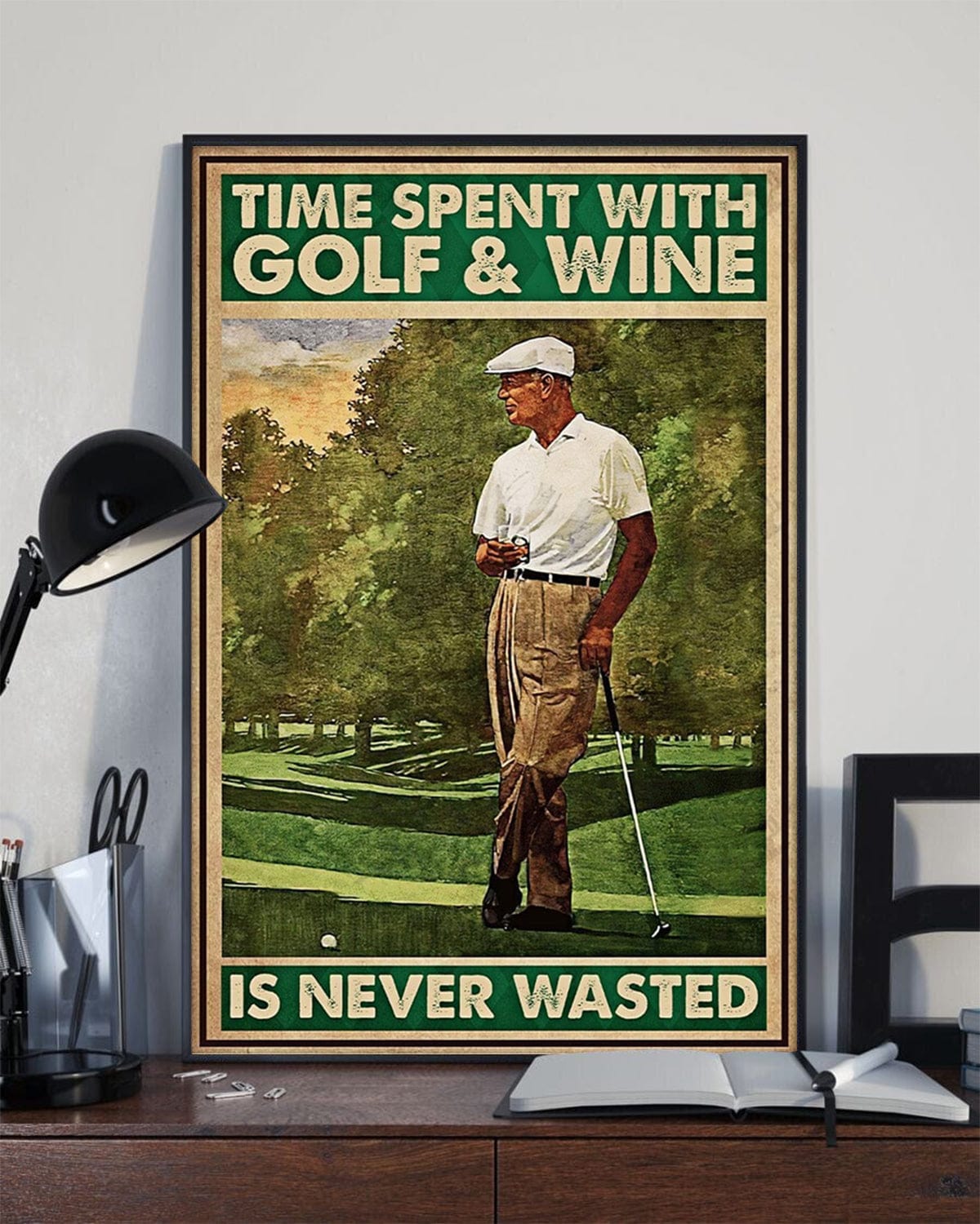 Time Spent With Golf And Wine Is Never Wasted Poster, Canvas