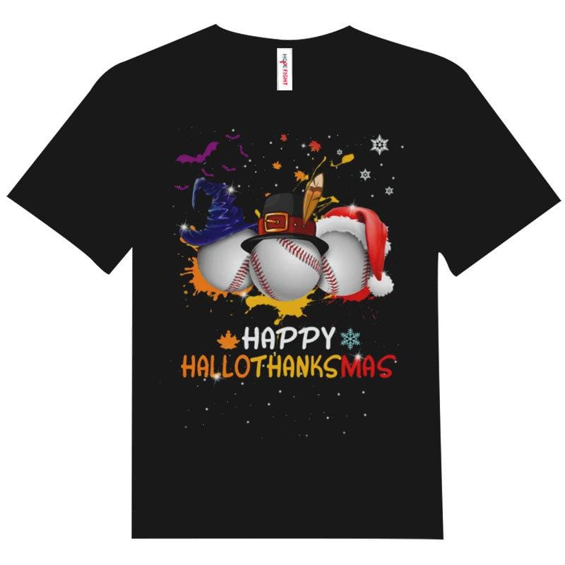 Happy Hallothanksmas Christmas Baseball Shirt